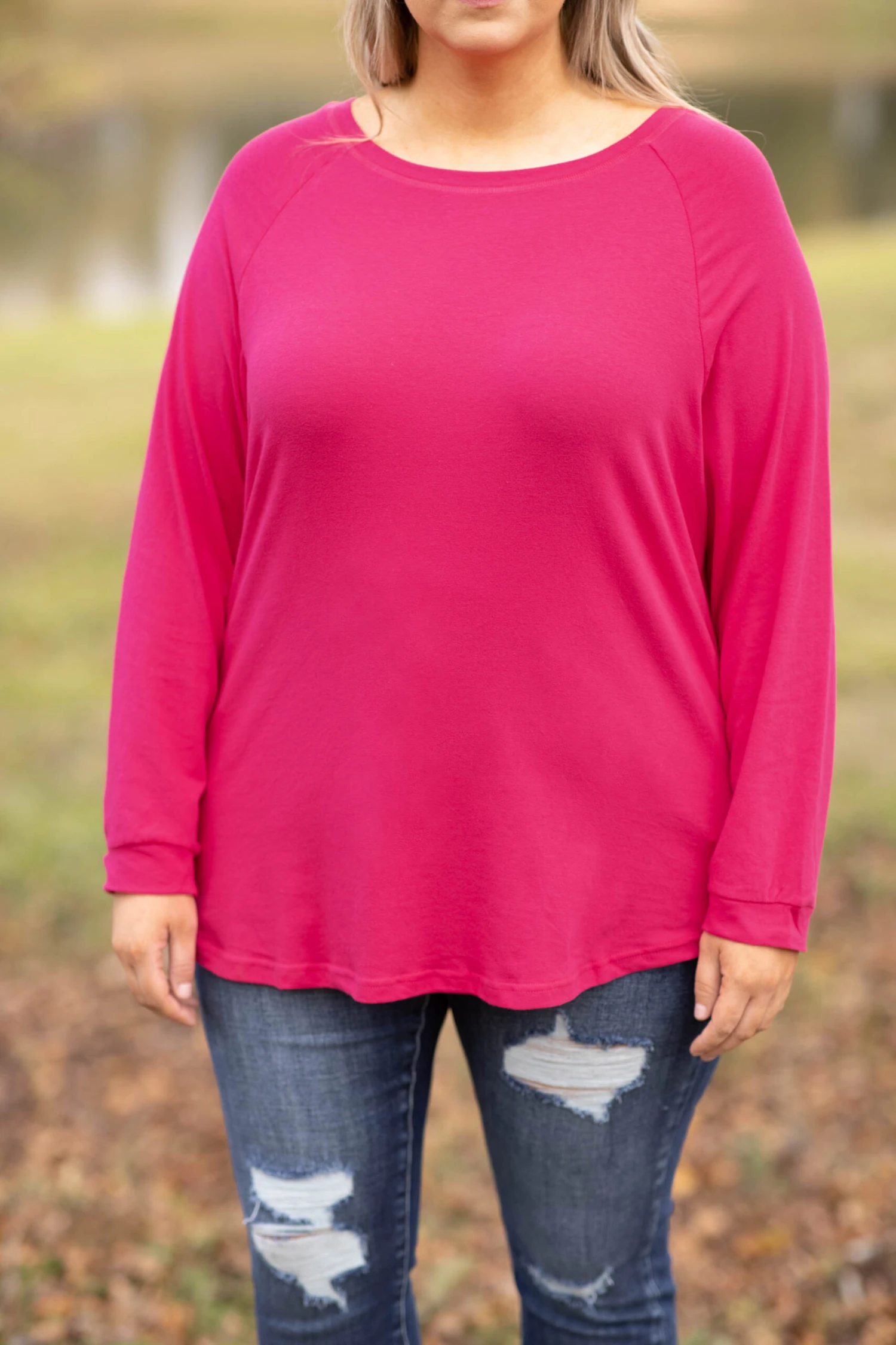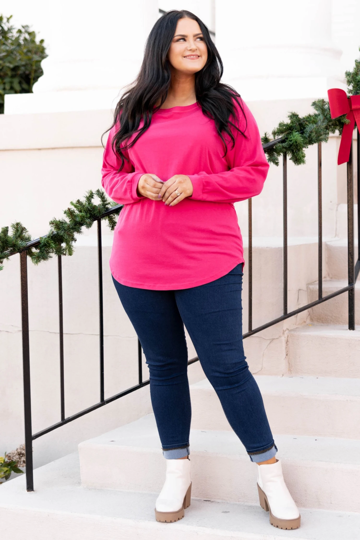 Our ALL NEW Slouchy is here!!! This bold fuchsia tunic has a flattering CURVED hem, our signature dolman sleeves and long, loose fit! This tunic is going to be your new go-to piece for the fall and winter! It is seriously the softest material ever, and the neutral color makes it SO easy to style! Pair it with leggings, skinnies, booties, slides, a scarf, some fun accessories…seriously the opportunities are endless!!