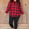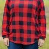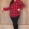 Our ALL NEW Slouchy is here!!! This red plaid tunic has a flattering CURVED hem, our signature dolman sleeves and long loose fit! This tunic is going to be your new go-to piece for the Fall and Winter or any time of year, really! It is seriously the softest material ever, and the neutral color makes it SO easy to style! Pair it with leggings, skinnies, booties, flats, a scarf, some glam accessories…seriously the opportunities are endless!! This comfy, cute beauty is a no-brainer!!