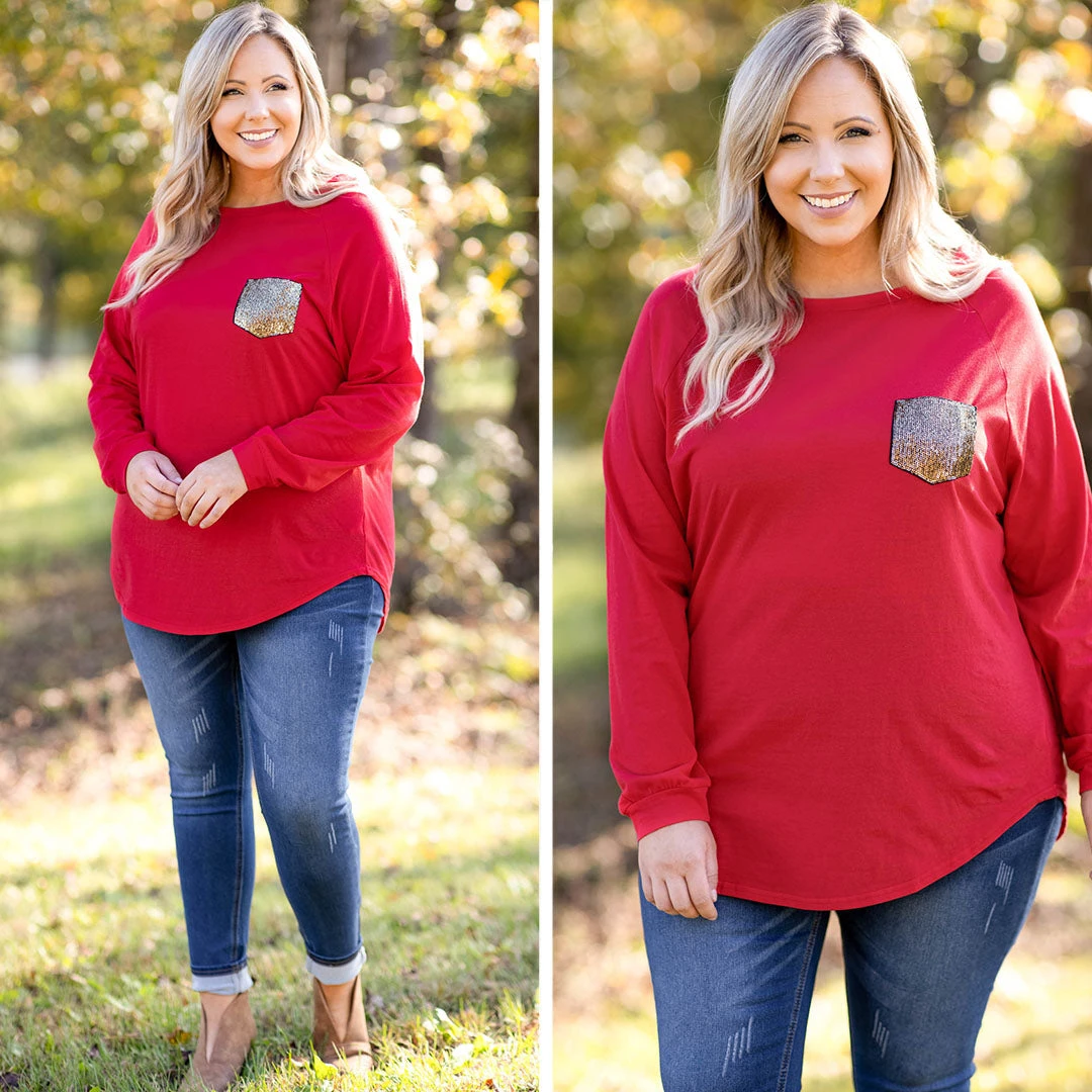 Your favorite tunic just got an upgrade! Introducing: The classic curved hem slouchy, now with a sequin pocket! This top remains just as comfortable and versatile but has an added touch of glam for a look that’s truly one of a kind! The material is soft and cozy with a relaxed fit you can wear everywhere! Not to mention how easy it is to style all season long! Pair our sparkly slouchy with your favorite accessories, comfy leggings, or chic booties. This top is a MUST in your wardrobe!