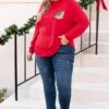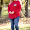 Be the first to review “Curved Hem Slouchy Dolman Tunic, Red Sequin”
