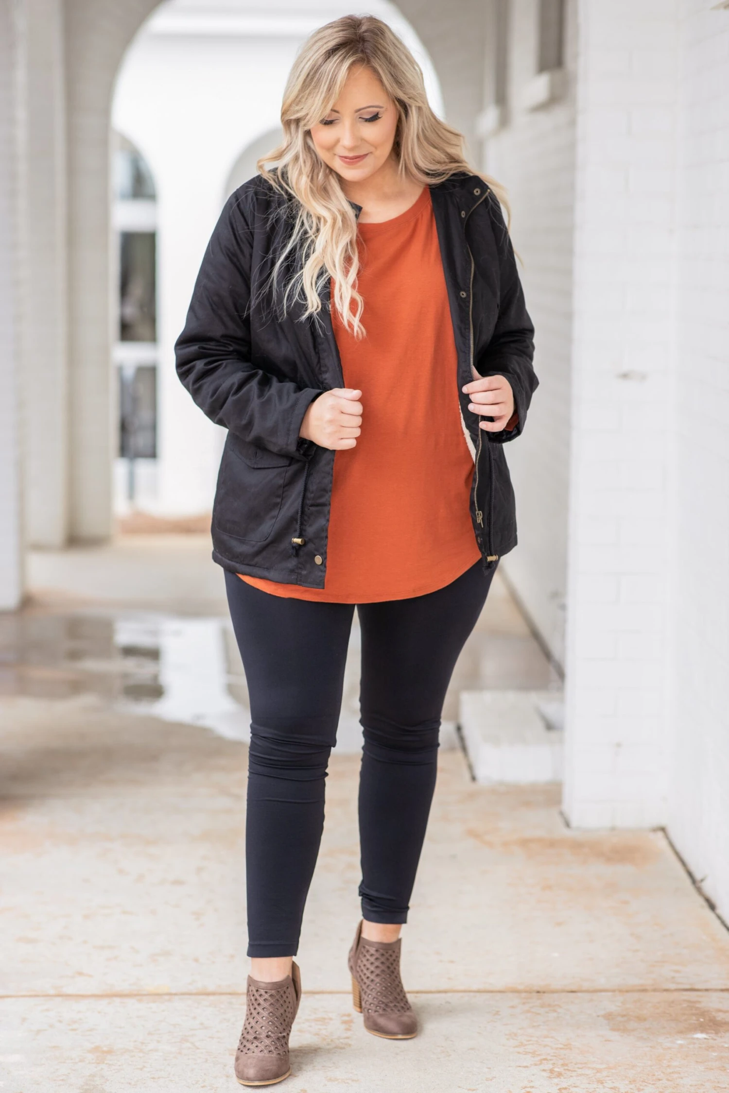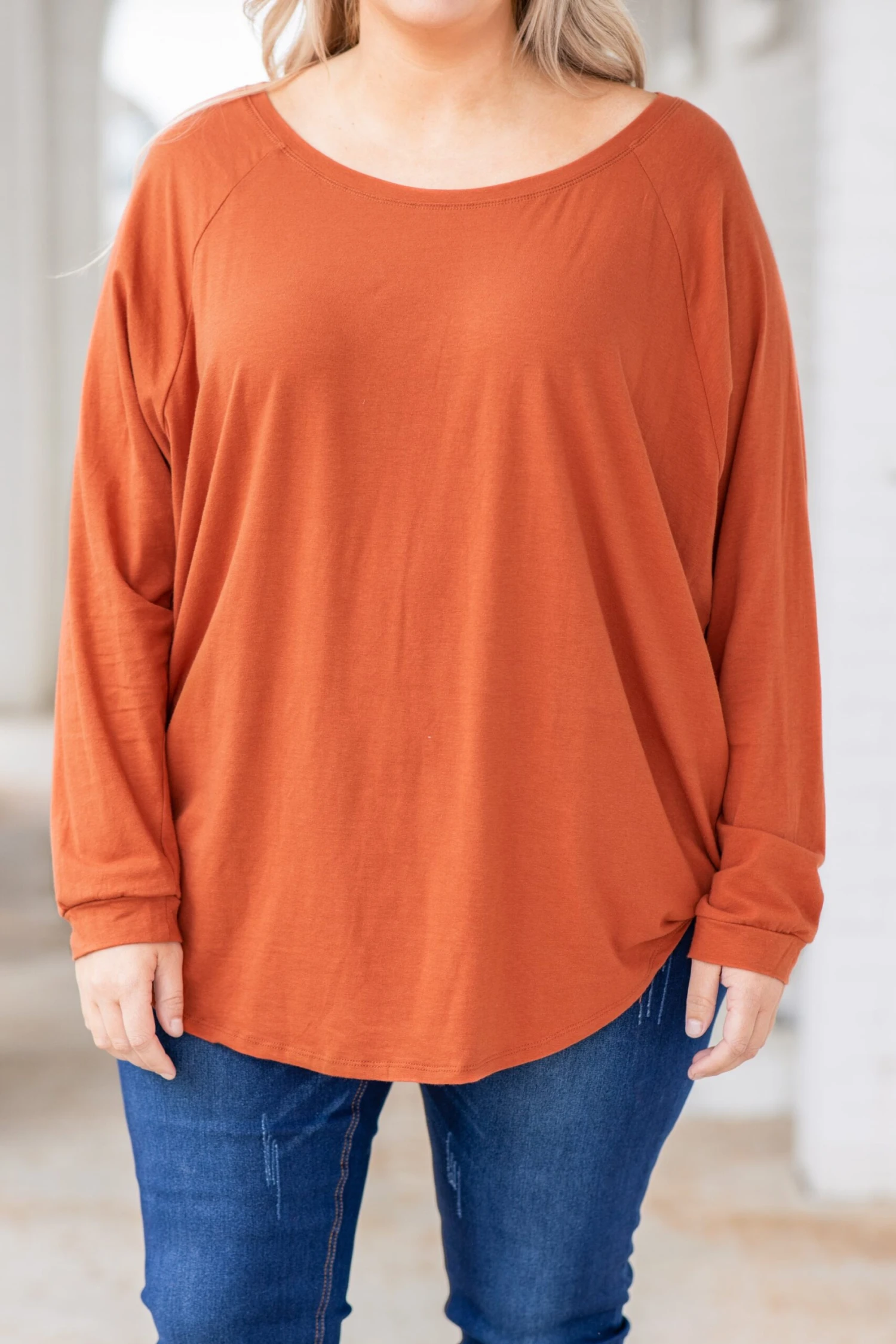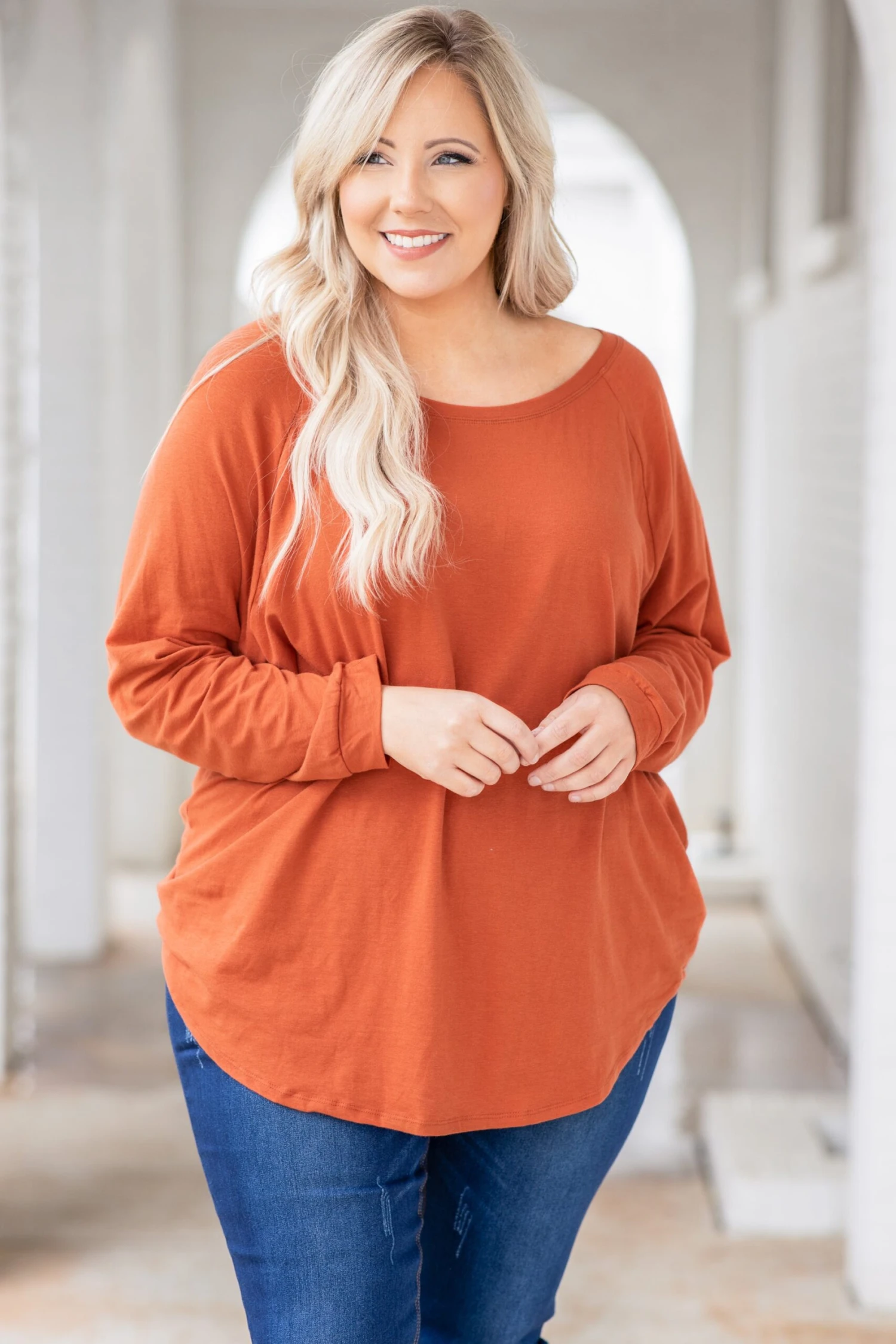 Our ALL NEW Slouchy is here!!! This stunning rust tunic has a flattering CURVED hem, our signature dolman sleeves and long, loose fit! This tunic is going to be your new go-to piece for the fall and winter! It is seriously the softest material ever, and the bold color makes it SO fun to style! Pair it with leggings, skinnies, booties, flats, a scarf, some glam accessories…seriously the opportunities are endless!! This comfy, cute beauty is a no-brainer!!