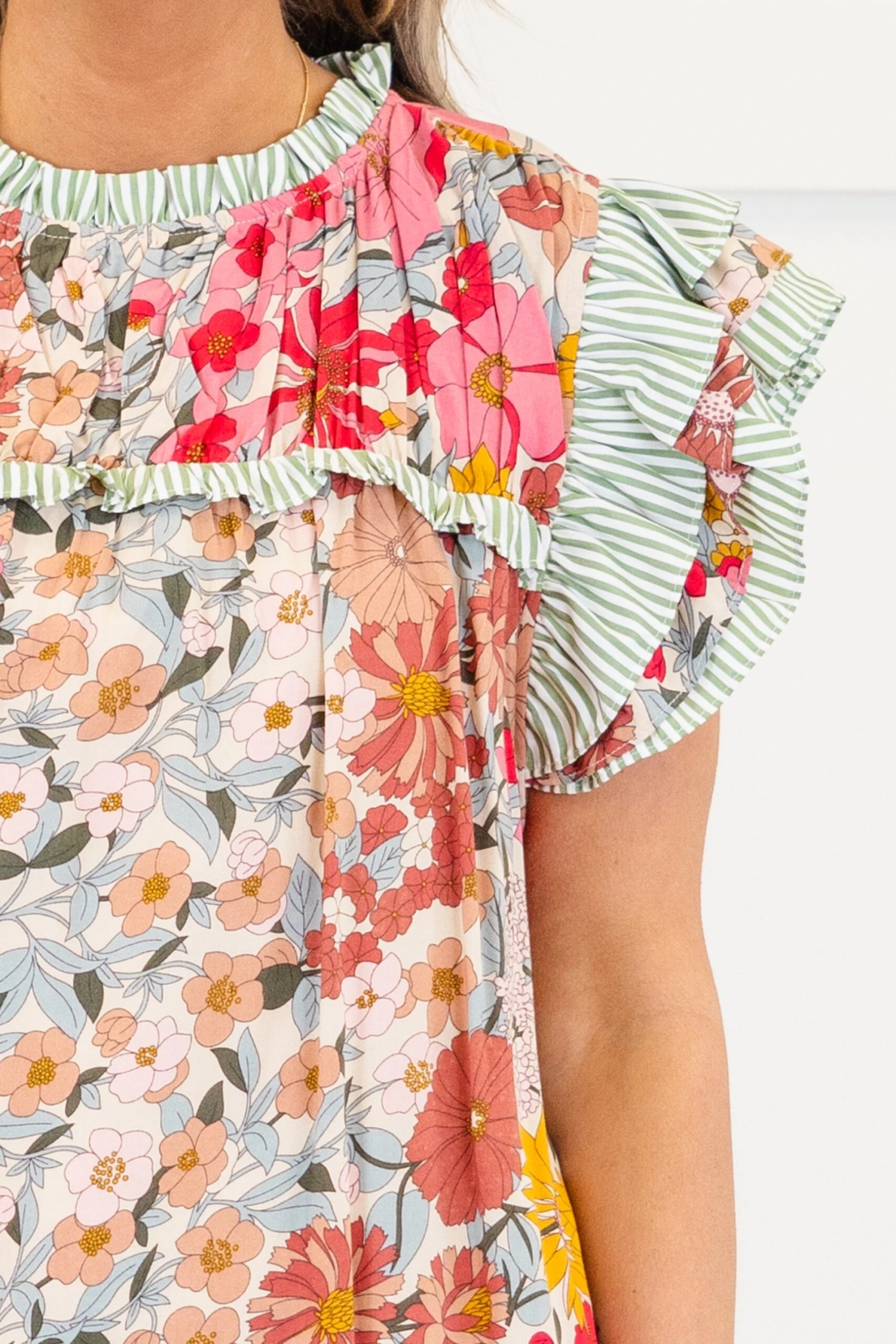 Bloom all day in our Daisy Dreams Top! This playful pink blouse features a contrasting ruffle trim, keyhole button closure and a delightful floral print. Perfect for adding a touch of whimsy to any outfit!