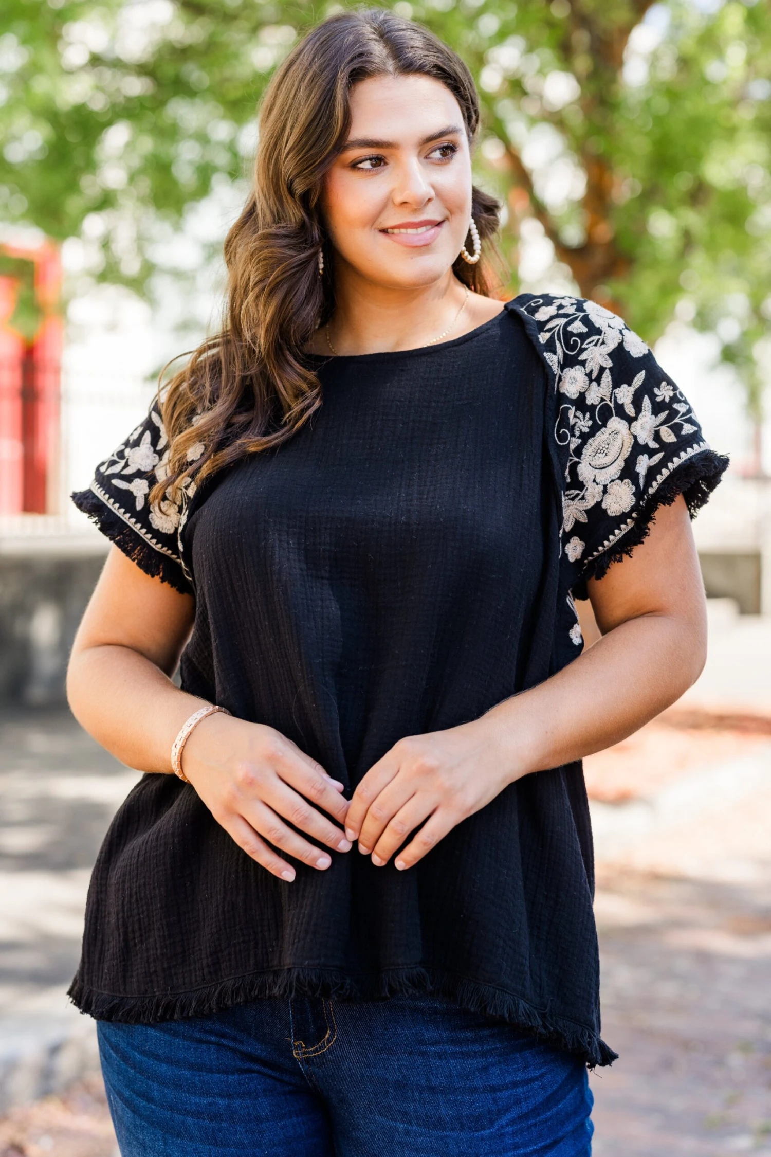 We are so in love with this FAB top! Featuring an embroidered design along the sleeves and frayed hemlines, this top adds a touch of uniqueness to any outfit! The neutral color ensures versatility and endless outfit possibilities! Get ready to dance the night away!