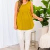 Twirl through the sunshine in our Dancing Through Gardens top! Adorned with delicate crochet detailing, this babydoll fit top is perfect for those summer days! Bring some fun and quirkiness to your wardrobe with our Olive Mustard color!