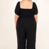 This jumpsuit will make you want to dance all night long! This cutie has a solid black color that is always classic and a smocked bodice that will flatter everyone! The puff sleeves are so trendy and the jumpsuit style is perfect for moving and grooving! Style this with heels or sandals for an amazing look at your next event!