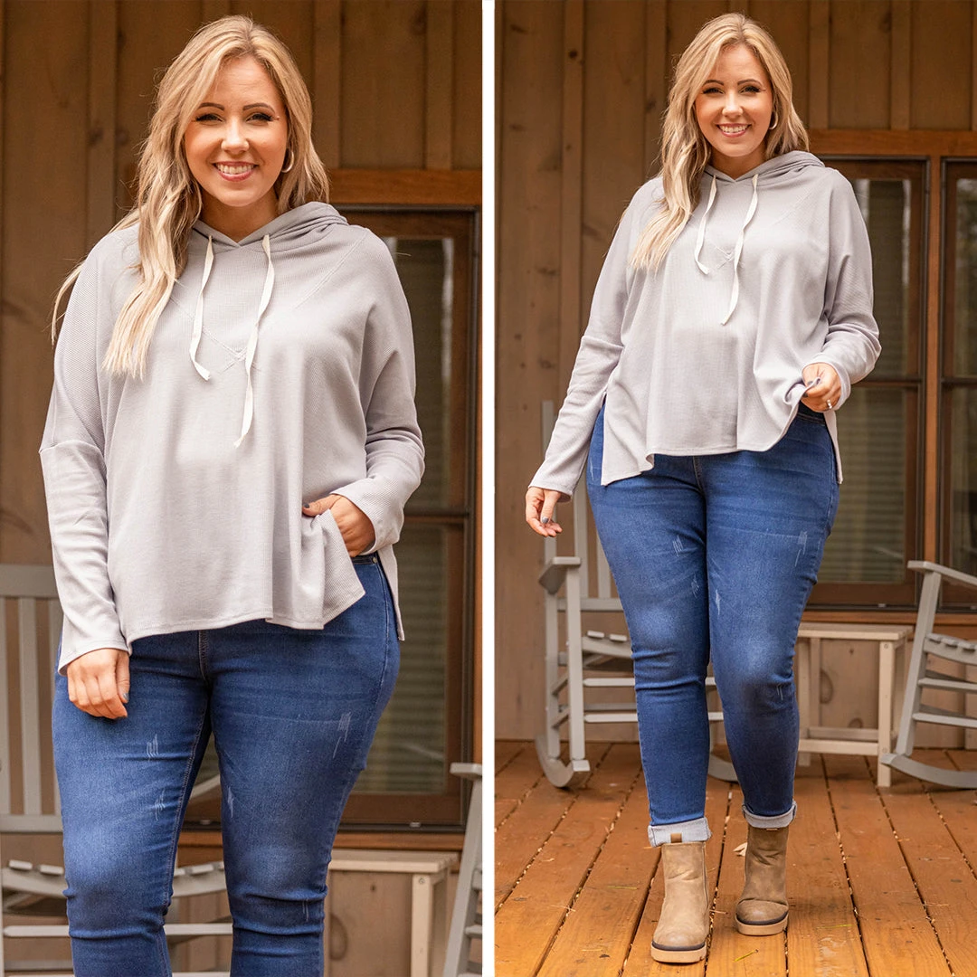 This hoodie is what daydreams are made of! It is so soft and comfortable for all-day wear! This hoodie features a soft textured fabric that is sure to keep you comfy all season long! Pair this hoodie with your favorite jeans or leggings for a chic, effortless look!