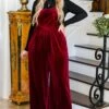Get ready for a touch of elegance with this jumpsuit! This stunning ruby velvet jumpsuit features a flattering square neckline, convenient front and chest pockets, and a wide leg design for a comfortable and chic look! Perfect for any occasion, elevate your wardrobe with this must-have piece!