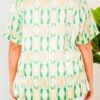 Stay stylish this spring with our Days Of Spring Top! Featuring a beautiful geometric pattern and a mix of pretty green colors, this top is perfect for both the office and a day out! Elevate your wardrobe with this versatile and eye-catching top!