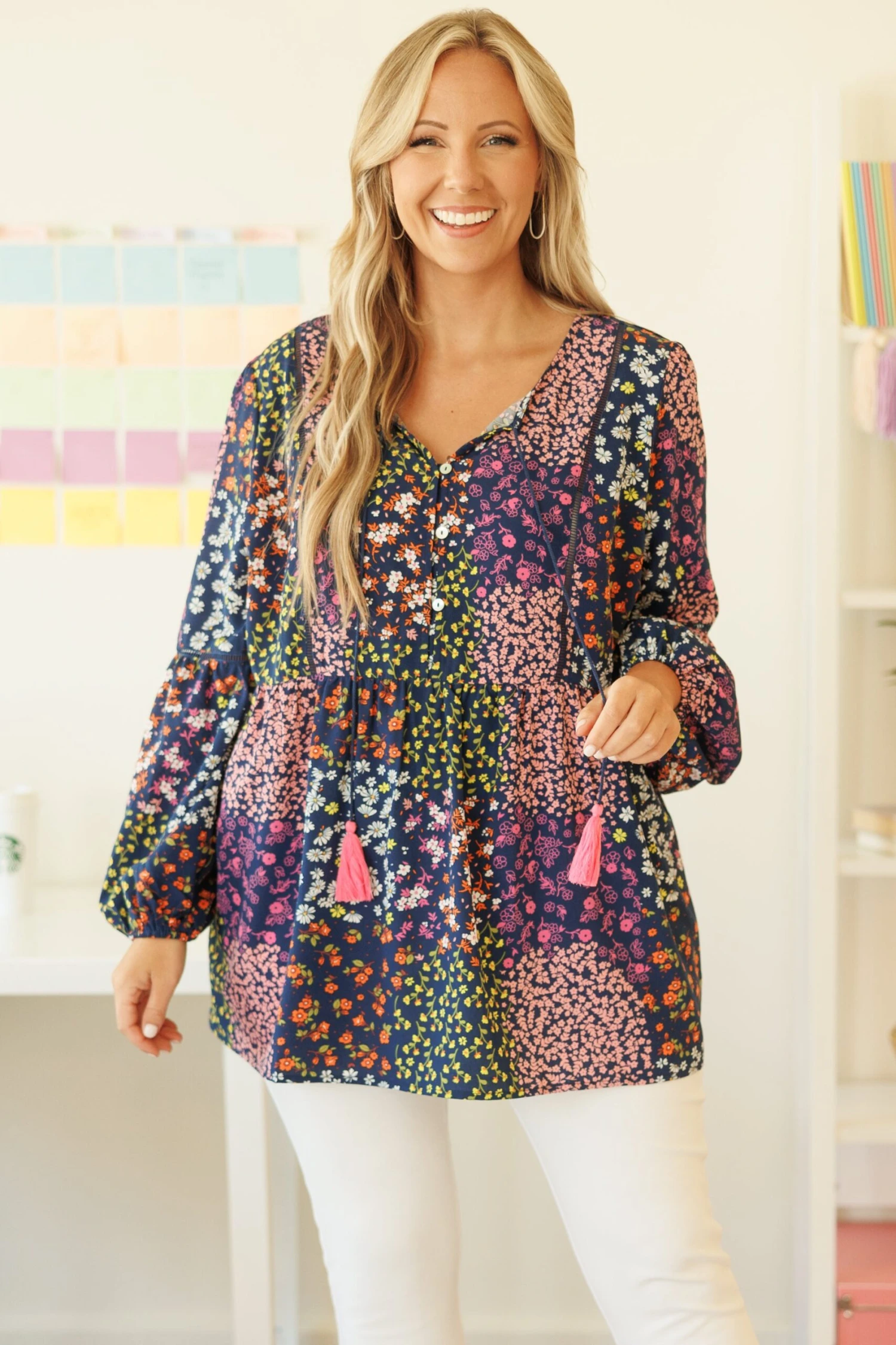 This navy top is perfect for any casual occasion! Its gorgeous floral pattern and flowy fit will have you looking dazzling with ease! Crafted with delicate detail, you’re sure to make a statement with this top!