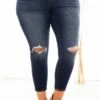 In these jeans, you’ll be hard to miss! These jeans have a classic dark wash you can dress up or down and style for every occasion. They’re comfortable for all day wear and feature the button front and the cutest distressing! Pair these jeans with a flowy top and booties for an effortlessly chic look!Â