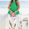 Elevate your style with this fabulous top in kelly green! The accordion style and flowy fit make it versatile for any occasion! Pair it with white denim and wedges for an effortlessly chic look!