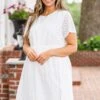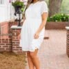 Add some sparkle to your wardrobe with the Diamond Season Dress! The classic white dress features a touch of flower-shaped sequins and an elastic waistline, making it the perfect combination of elegance and comfort! Perfect for any season, this dress will have you shining in style!