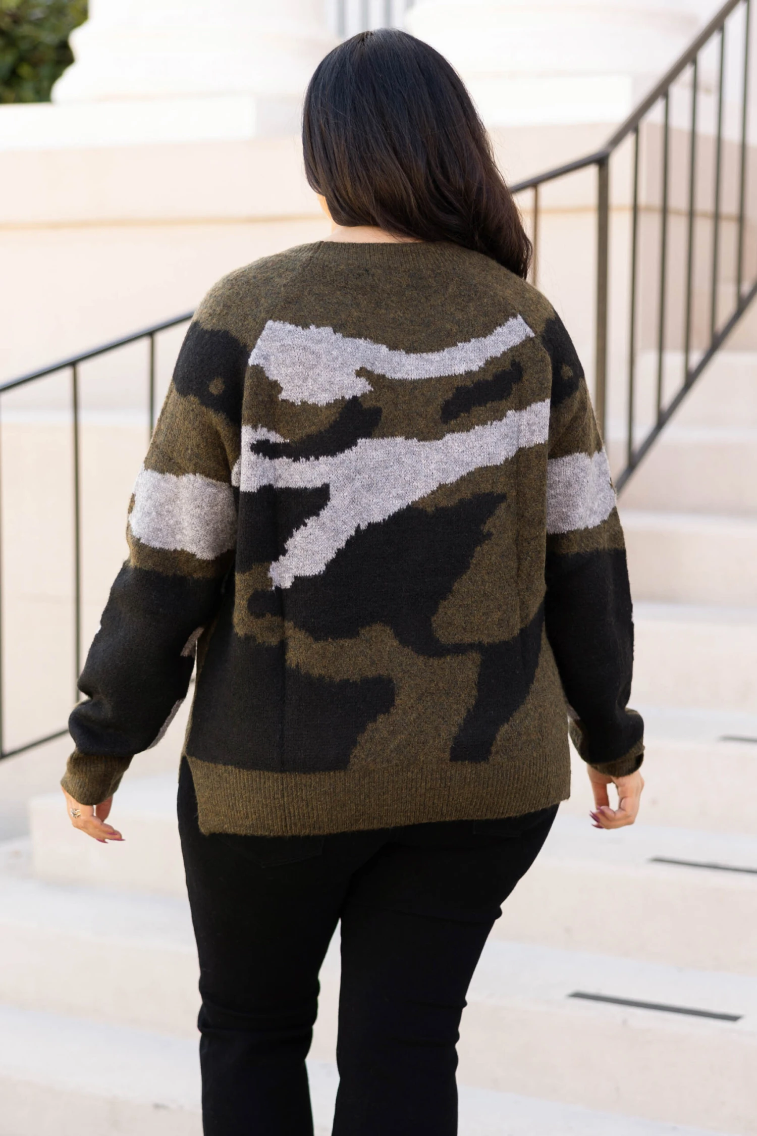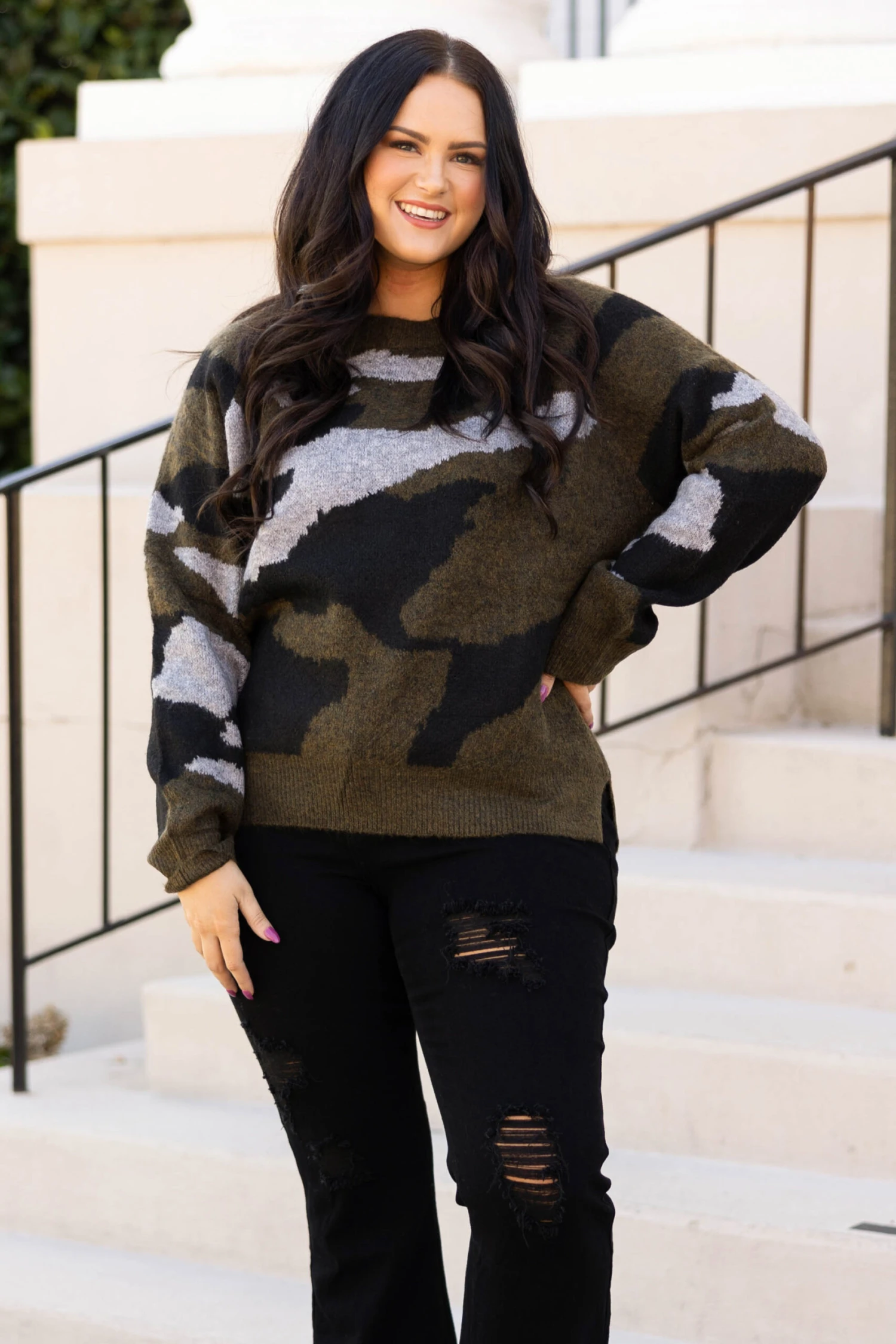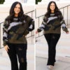 You’ll be disguised by fashion fate in this sweater! This sweater has a lovely olive color with a camo pattern that is perfect for the season! The soft, cozy material is just in time for those cool days ahead! Style this sweater with distressed jeans and booties for a casual chic look!