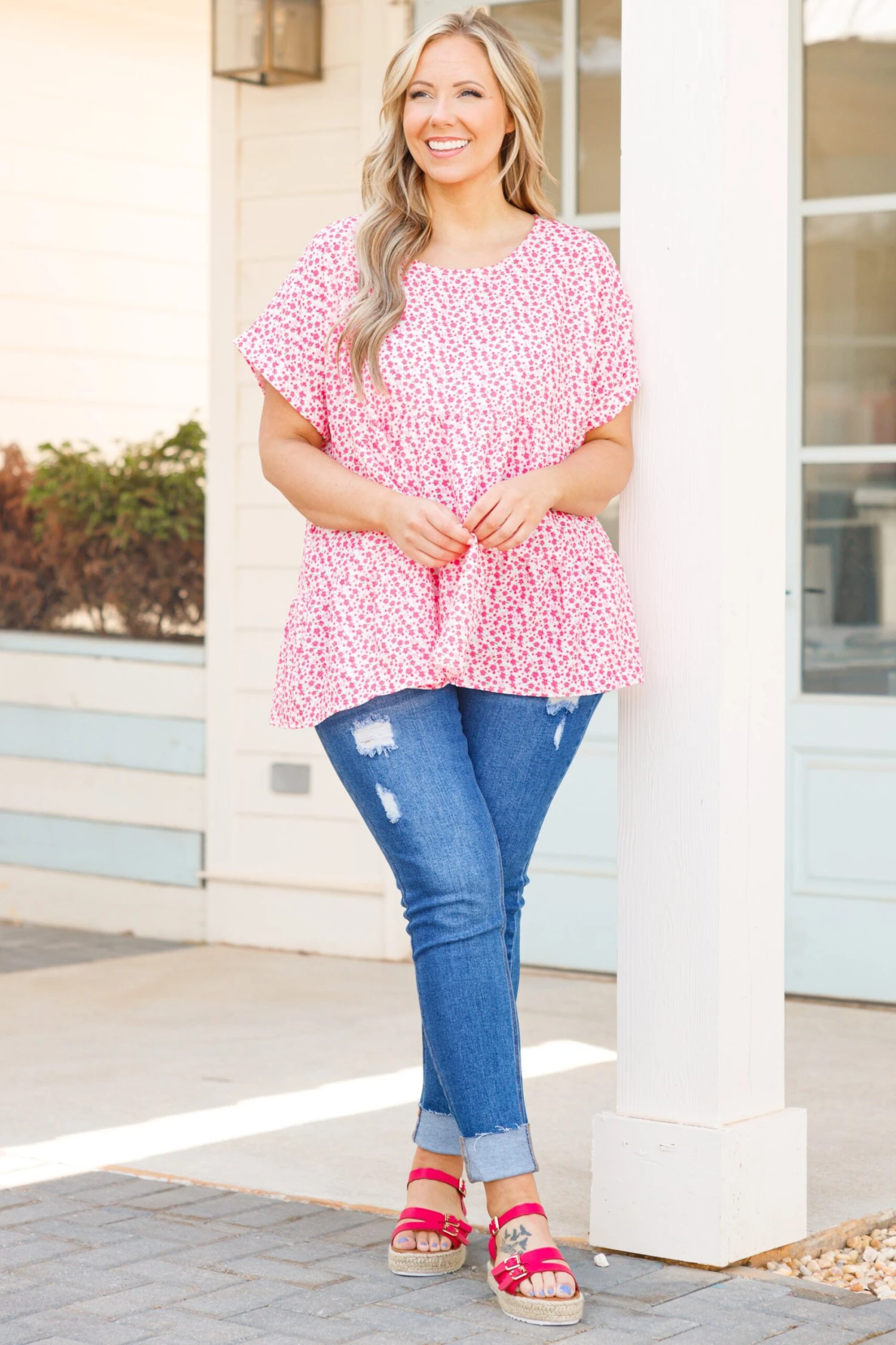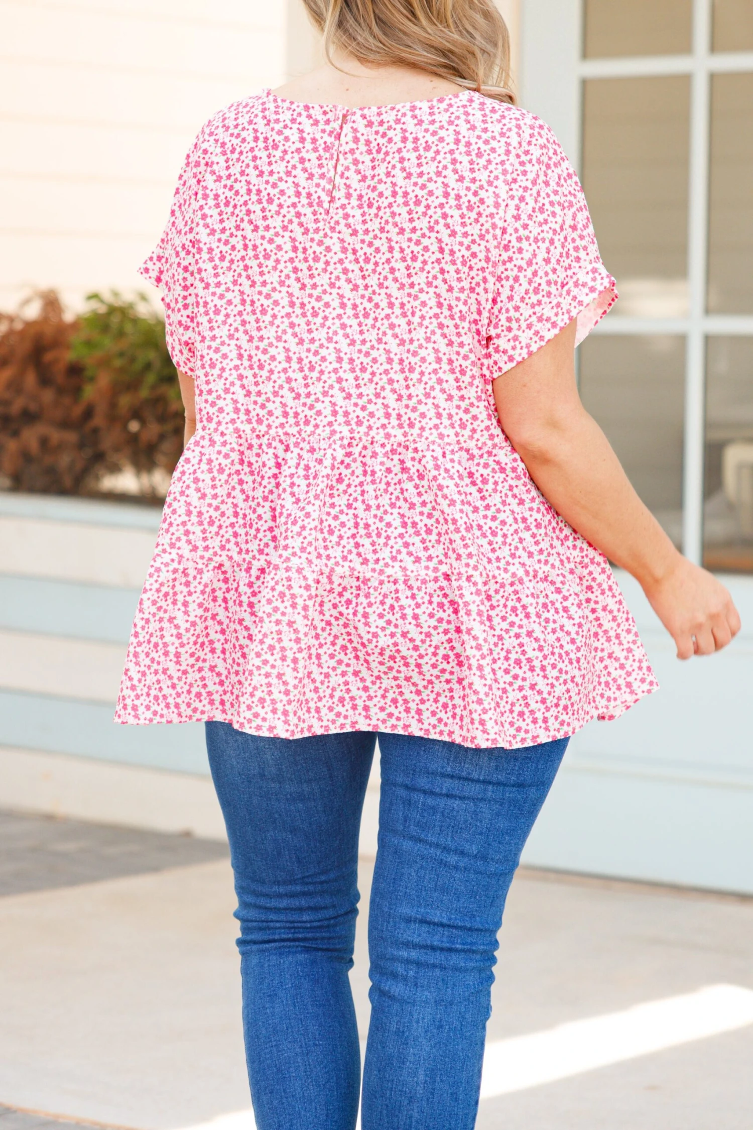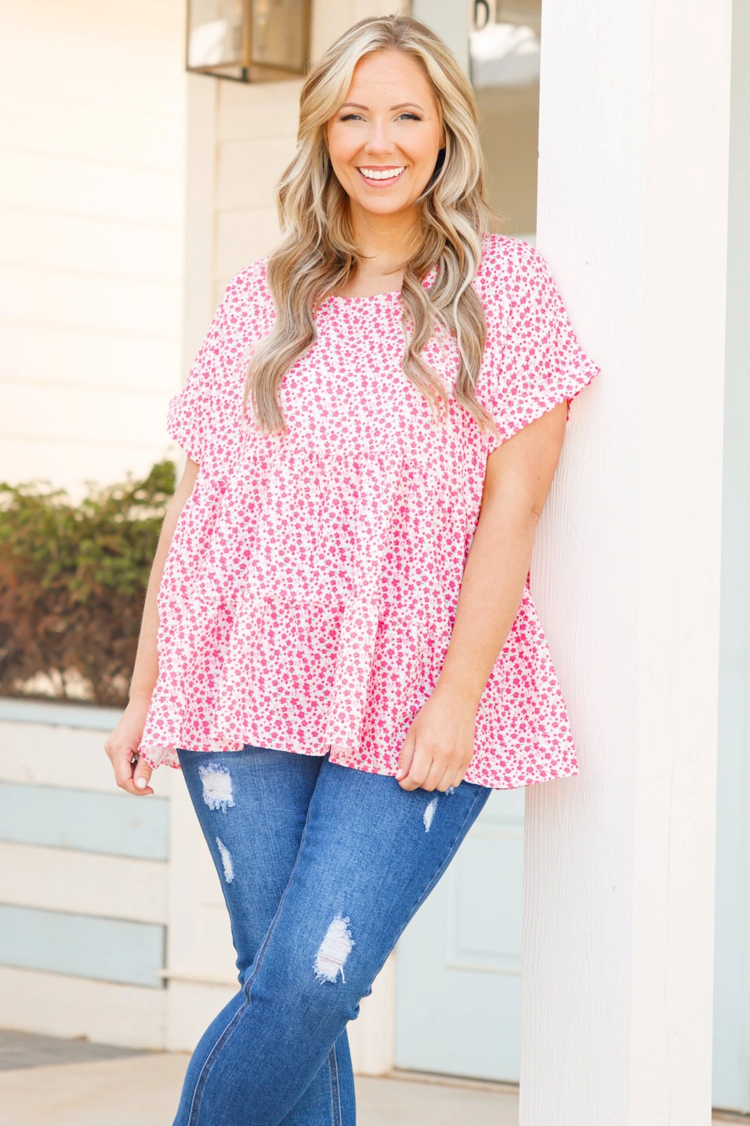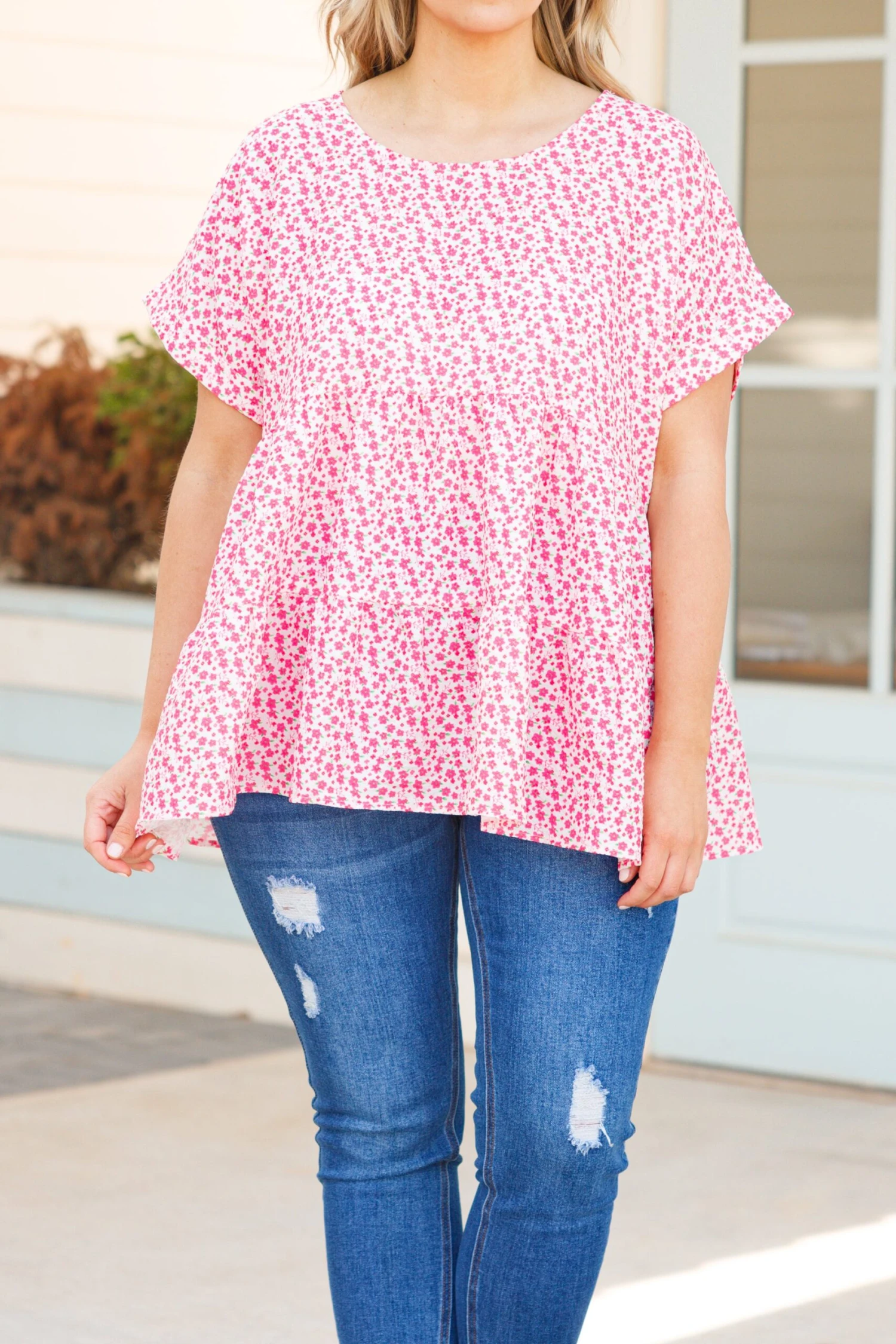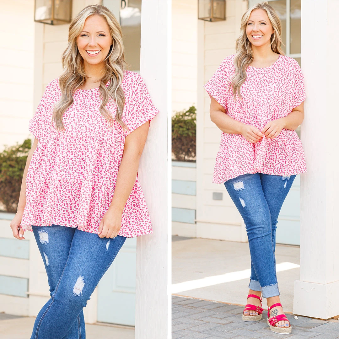 This top is a stunning wardrobe addition! Its babydoll design flatters your figure, while the eye-catching floral pattern and pretty pink color will turn heads! Make a statement in this timeless piece!