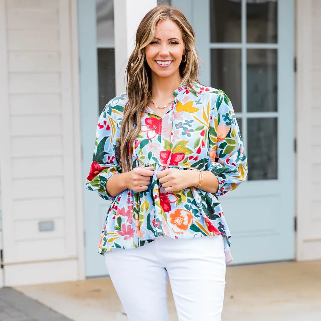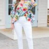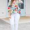 You need this top in your wardrobe! It features a beautiful floral pattern, adding a touch of elegance to any outfit! The flowy fit adds comfort and versatility, making it perfect for pairing with white denim and sandals or wedges! Elevate your wardrobe with this must-have piece!