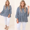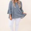 This top is divine! It has a pretty damask pattern with a neutral color that is perfect for this season. We love the versatility of this top and know that you will too! It is perfect for a day at the office or a brunch date with the girls! It’s comfortable for all-day wear, has a flowy fit, and features a cute babydoll style! Simply pair this top with your favorite skinnies and wedges for an effortlessly chic look!Â