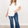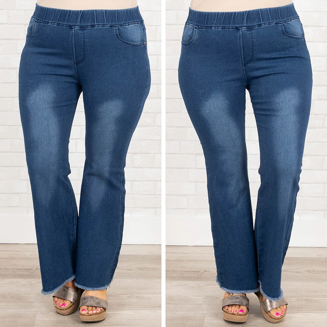 We are in love with these gorgeous jeggings! They have a trendy medium wash with a flare design that never goes out of style! The sassy, flattering fit is perfect for paring with a cute blouse and accessories for the ultimate chic look!