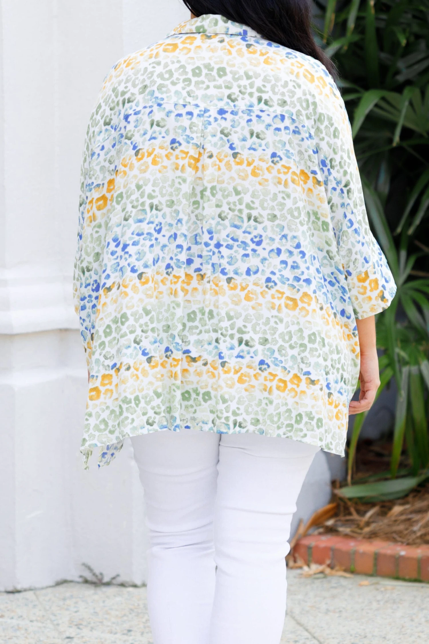 This FAB top is the perfect choice for a day of shopping! The abstract pattern and tunic styling offer a comfortable and stylish appeal! With a design sure to be a conversation starter, it is bound to become a favorite!