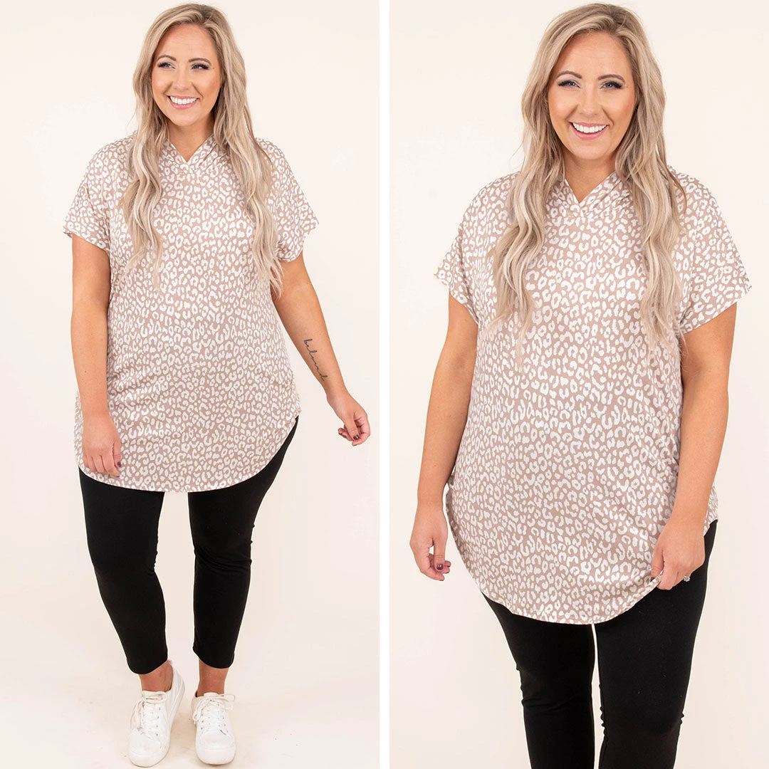 Don’t miss your chance to get this hoodie! This pullover has a classic leopard pattern with neutral colors you can style for every occasion! It’s comfortable for all-day wear, has a relaxed fit, and features the cutest hood! Pair this pullover with skinnies and sneakers for an easy everyday look!