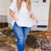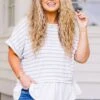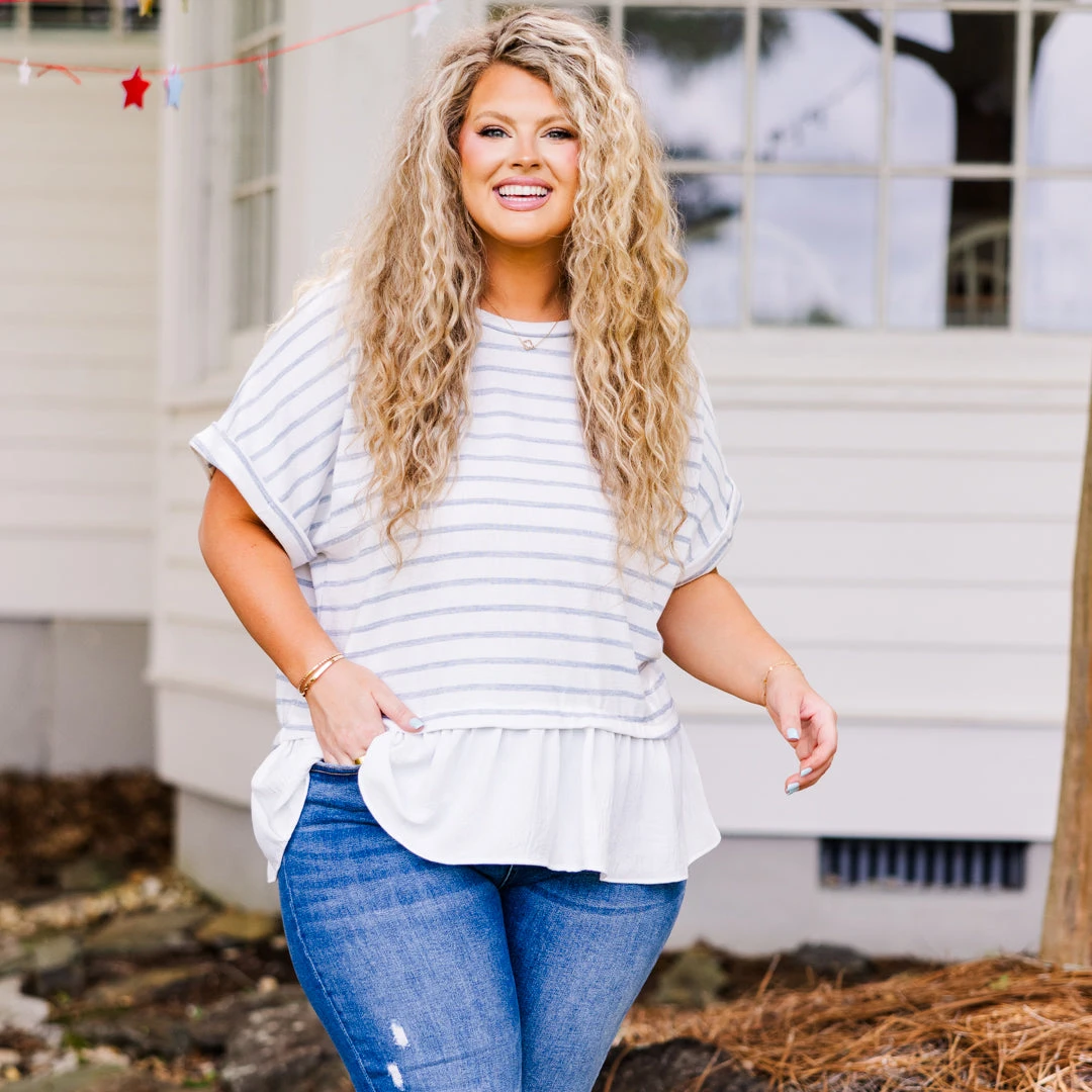 Exude elegance and grace in this top! This luxurious babydoll style top features blue stripes, adding a touch of sophistication to your wardrobe! A must-have for any fashion lover’s collection!