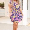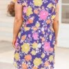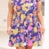 You’ll be the talk of the town in this beautiful dress! Its navy hue is printed with a delicate floral pattern, designed to flatter with a flowy, sassy fit and flutter sleeves! A feminine and timeless piece, this dress will become your go-to special occasion look!