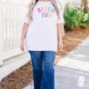 Hang out down by the coast in this sweet tee! The beach bum graphic is so fun and the white color can be paired with all of your favorite bottoms! Just throw this babe on with some shorts and sandals for an easy but chic look!