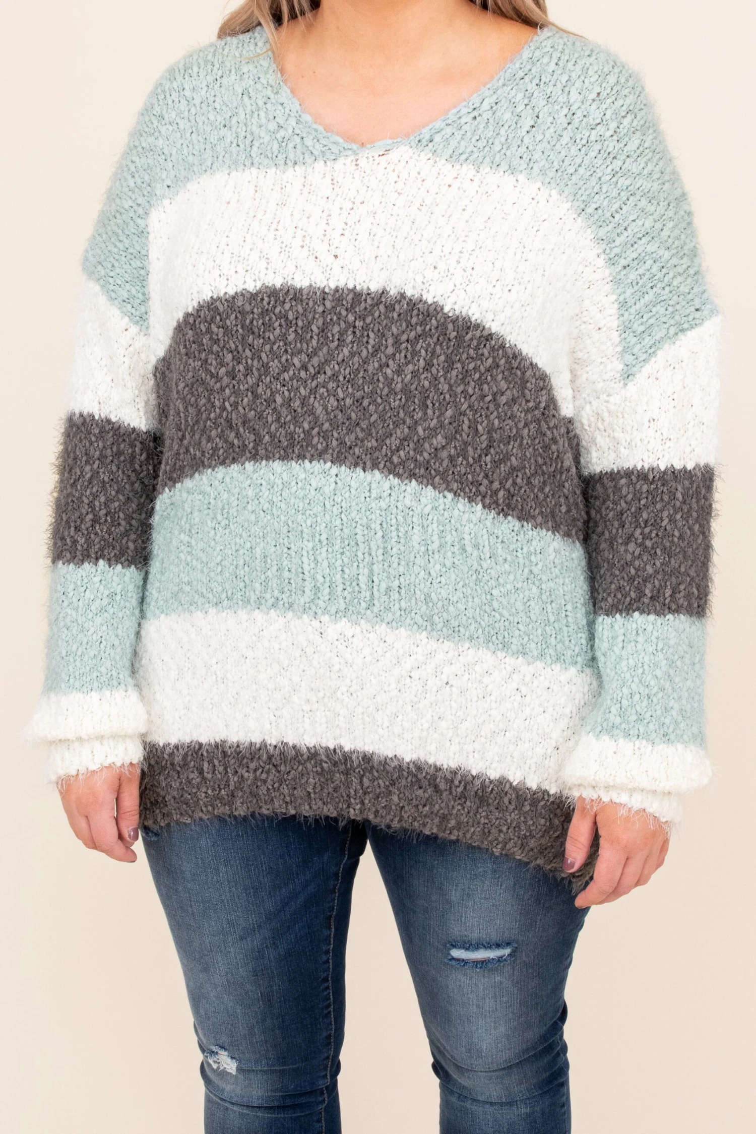 Going downtown for a fun night out? This sweater is perfect for the occasion! It has a chic color block pattern with a fun mix of colors that are perfect for the season! This sweater has a soft fabric with a relaxed fit to keep you comfortable all day long and the trendiest V-neck cut! Simply, style this sweater with skinnies and boots for an easy everyday look!Â