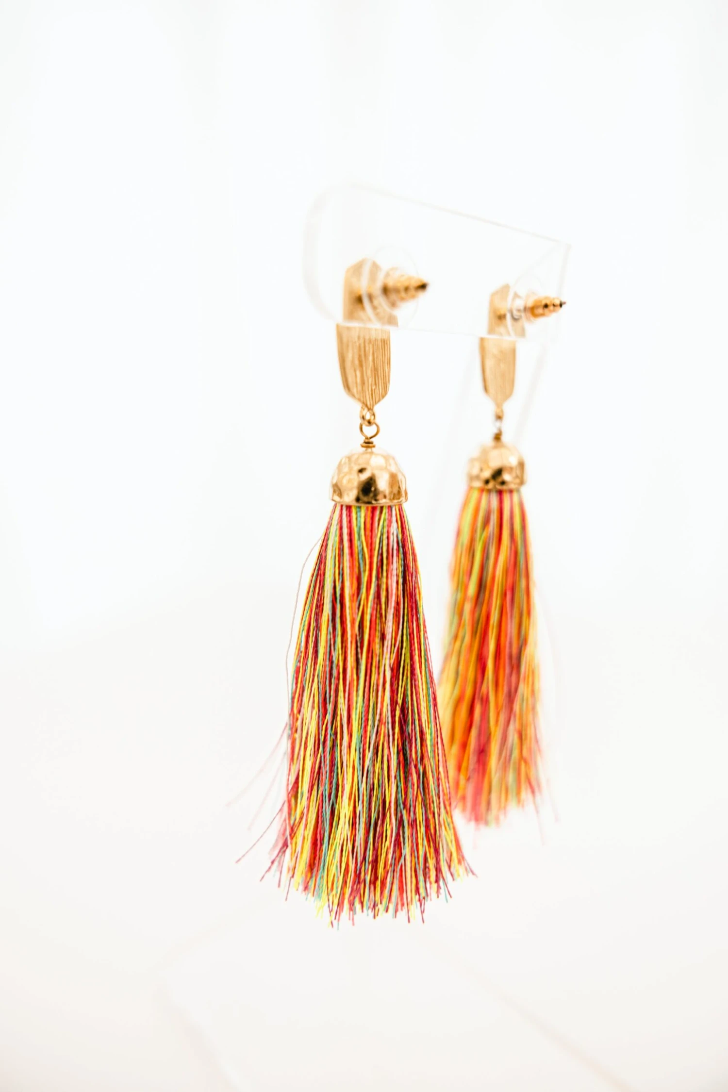 These beauties are perfect for any fashionista! These earrings feature a tassel design and bold neon multi colors to make a statement! Their beautiful design is sure to draw the eye and add a touch of fun to any outfit!