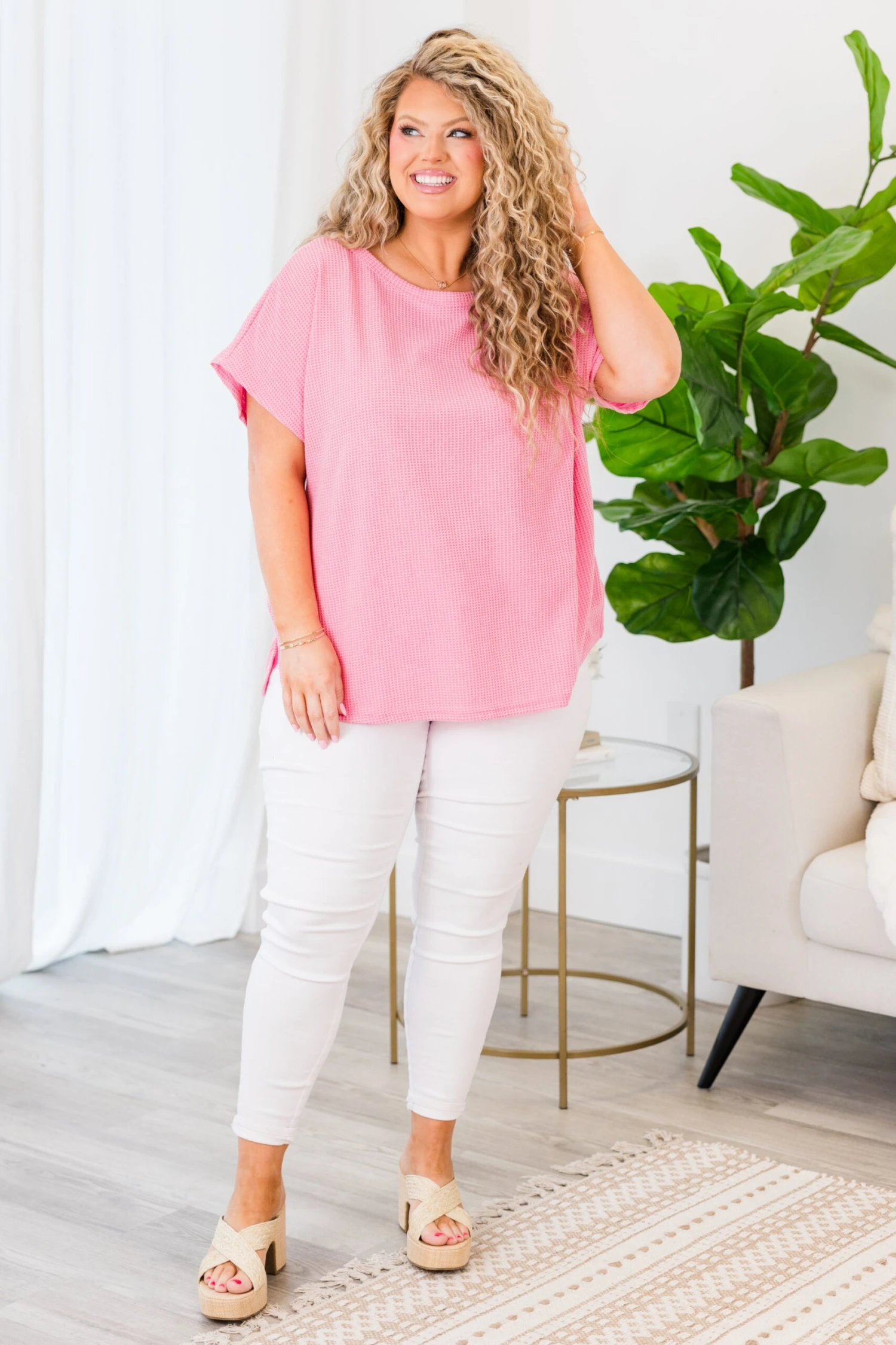 Let this beauty drift into your wardrobe! This top boasts a unique textured material that is so sweet! Complemented by a charming plaid pattern and stunning pink color, this top is the perfect addition to any wardrobe!