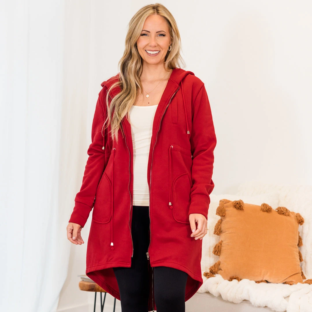 Rock this jacket early in the morning or late at night! It serves as the perfect layering piece and will pair perfectly with your current wardrobe! This burgundy jacket has a functional zipper, comfortable for all-day wear, and is figure-flattering for all body types! Pair this jacket with your favorite graphic tee, jeans, and booties for a chic, fall look!