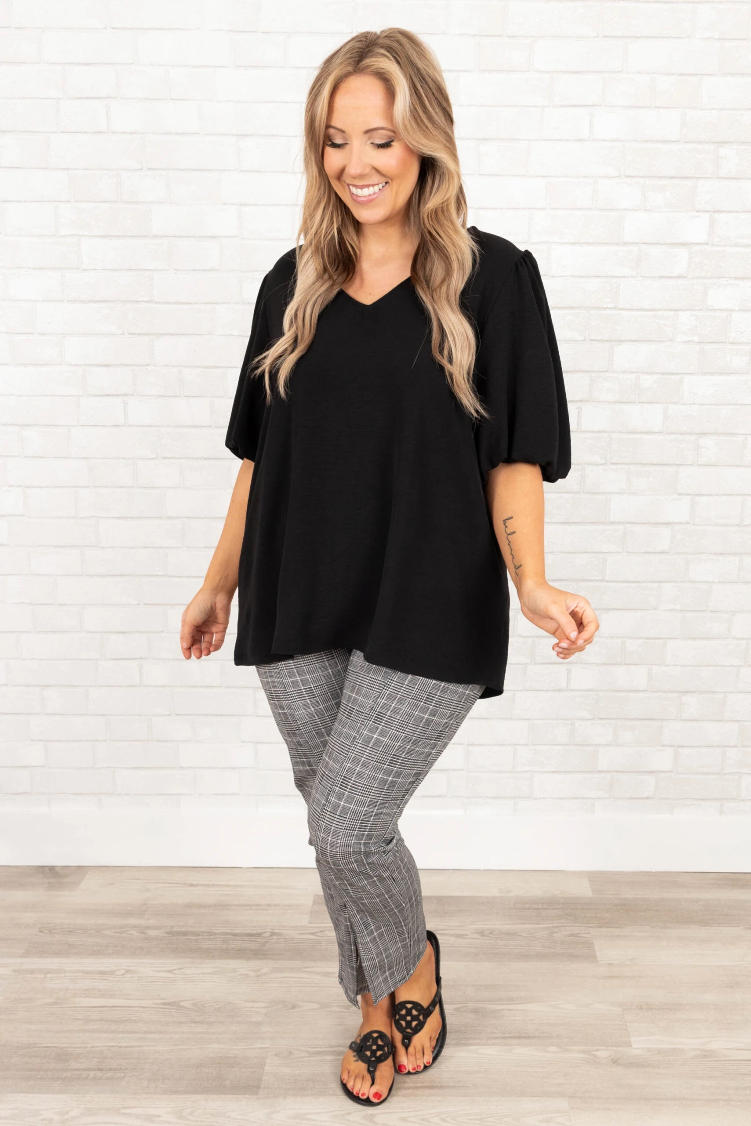 Don’t miss your chance to grab these FAB pants! They have a neutral color with a trendy plaid pattern that is just what you need in this season! Style these pants with a flowy top and sandals or heels for a classic chic look!
