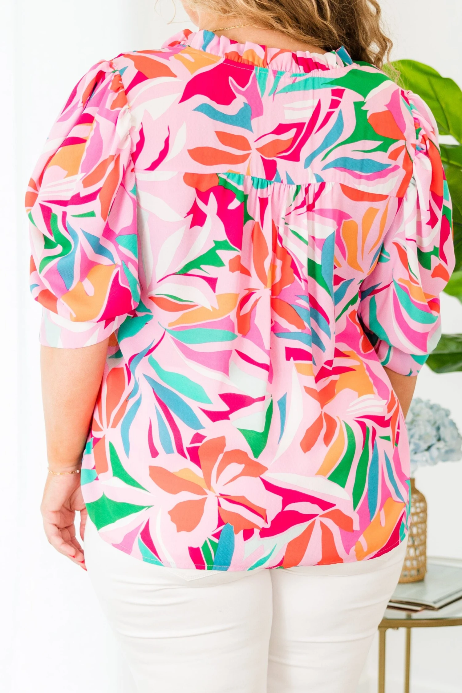 Experience the chic style this beauty brings to your wardrobe! This top offers a flowy and lightweight fit, adorned with delicate ruffle detailing and a beautiful pink multi color floral pattern! This top is perfect for a resort trip or a day at the beach, adding a touch of fun and style to any outfit!