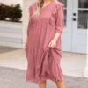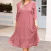 This dress is a total dream! It has a pretty pink color with a raised polka dot pattern that is a season favorite! The midi length and flowy style makes this the perfect go-to dress for the season! Style this dress with sandals and cute accessories for a classy chic look!