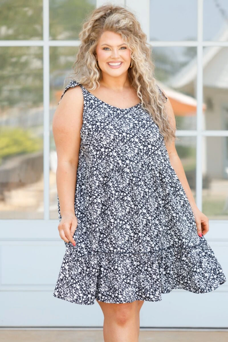 Shine bright with or without the sun in this dress! This dress has a trendy floral print with neutral colors you can style for every occasion! It’s comfortable for all-day wear, has a figure-flattering fit, and features the cutest ruffled details! Style this dress with sandals or heels for an effortlessly chic look!Â