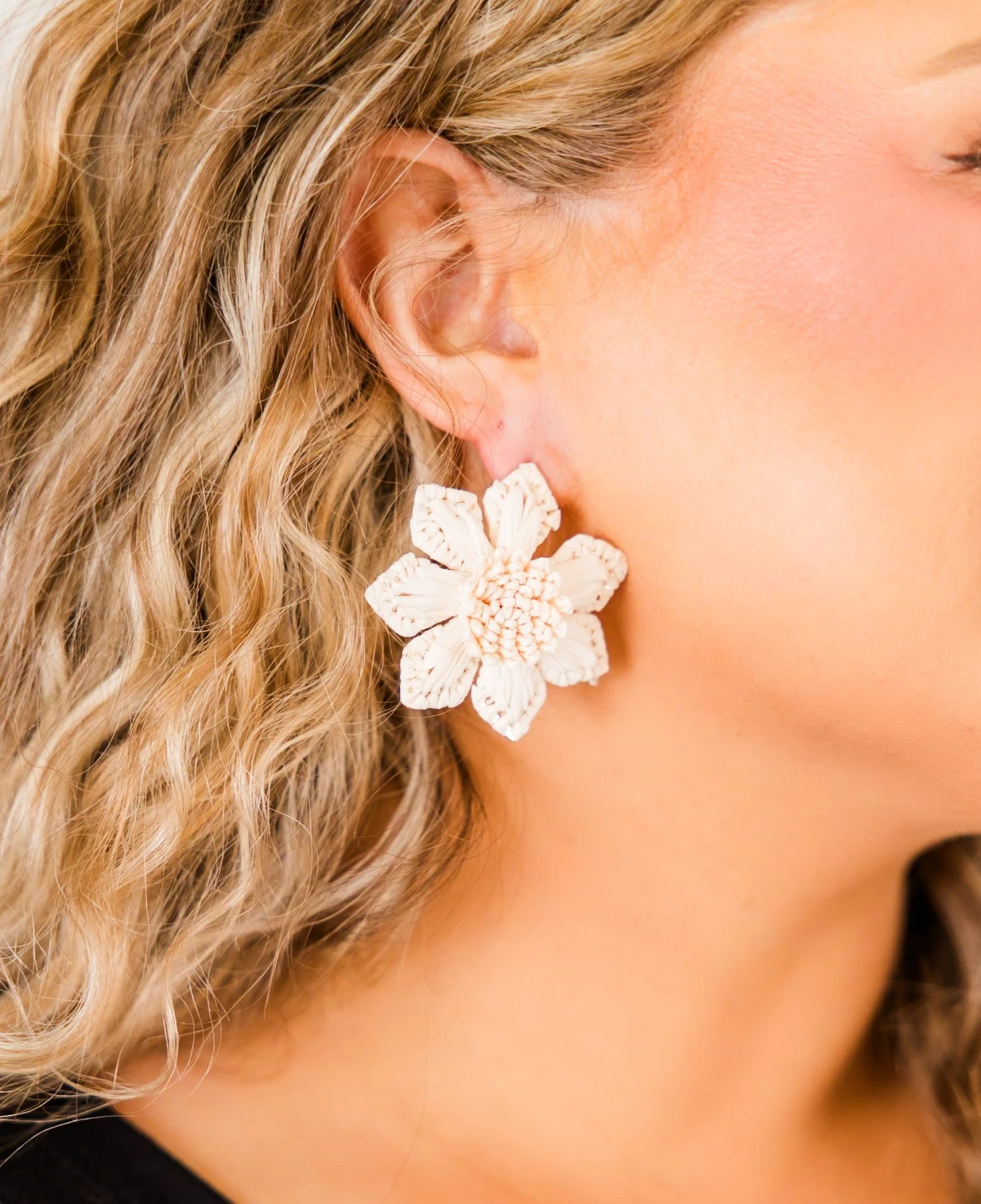 Get out and enjoy the sunshine in these cuties! Featuring a stud design, these earrings are easy to wear and can be paired with any style! The neutral ivory color and intricate floral design add a timeless charm! Crafted from straw, they are lightweight and perfect for everyday wear!
