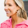 Set sail for style with these earrings! These gold statement starfish earrings will add a touch of whimsy to any outfit! With convenient post backs, you can easily wear them all day (and night) long! Don’t be afraid to make a splash with these playful and unique earrings!
