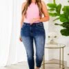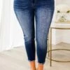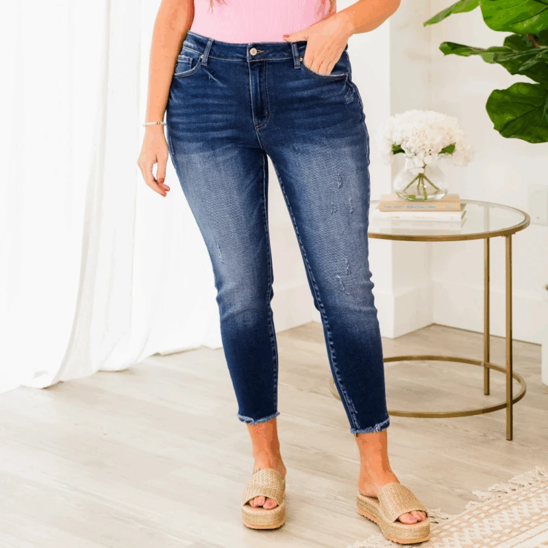 Charm the crowd in these FAB jeans! Made from comfy fabric and featuring a stylish dark wash with light distressing, these jeans are a must-have for any fashion-forward wardrobe! Upgrade your denim game with this versatile and chic pair!