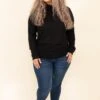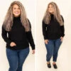 You’ll be especially stunning in this chic top! It has a neutral black color with a high neckline and figure flattering fit that is perfect for the season! You can dress this top up with some patterned pants and heels or skinnies and sneakers for an everyday chic look!