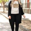 Life is even sweeter in this cardigan! The black color is easy to style over anything in your wardrobe. Style this like our girl, Kim, over a leopard top and with black jeans for a chic look!