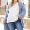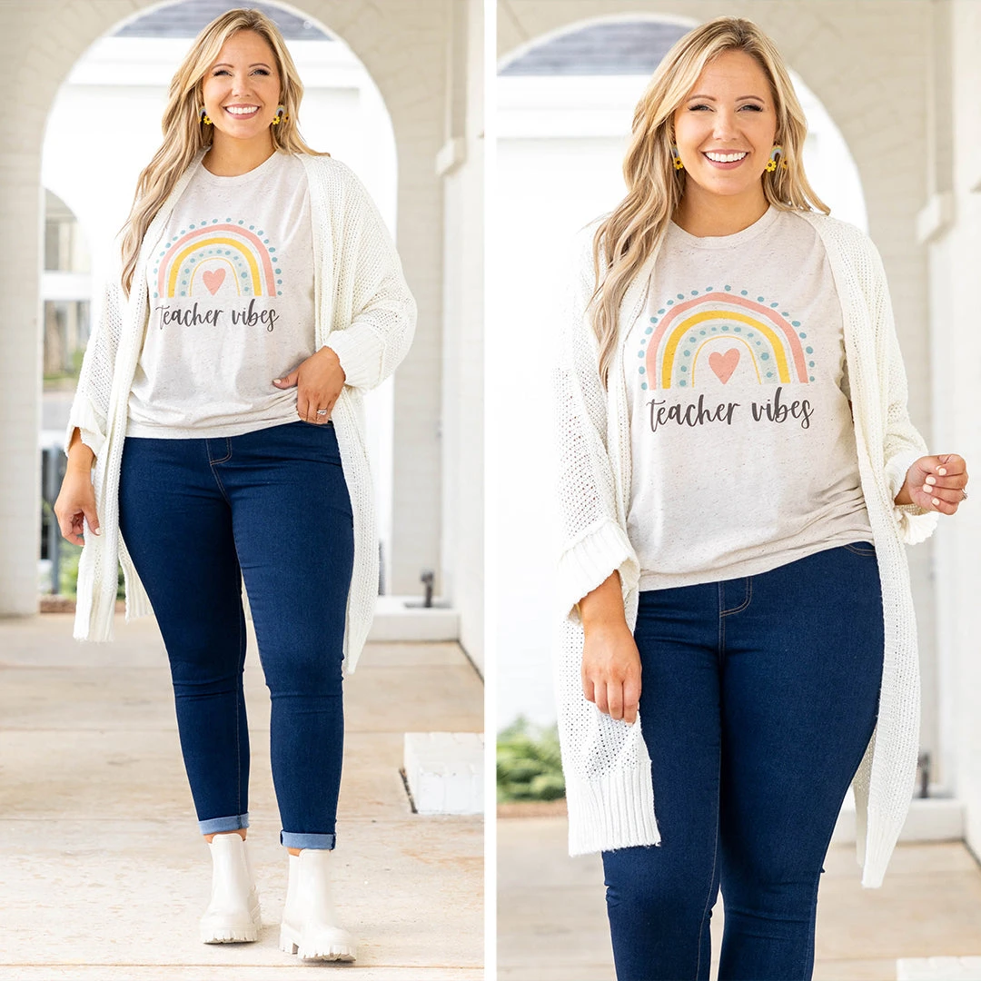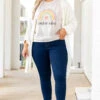 Life is even sweeter in this cardigan! The ivory color is easy to style over anything in your wardrobe. Style this like our girl, Kim, over a solid top and with jeans for a chic look!
