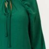 Break boundaries with this maxi dress in hunter green! Made with air flow fabric, this long sleeve dress boasts a tiered detail and tie round neckline with cuff sleeves! Discover new adventures in this bold and versatile dress!