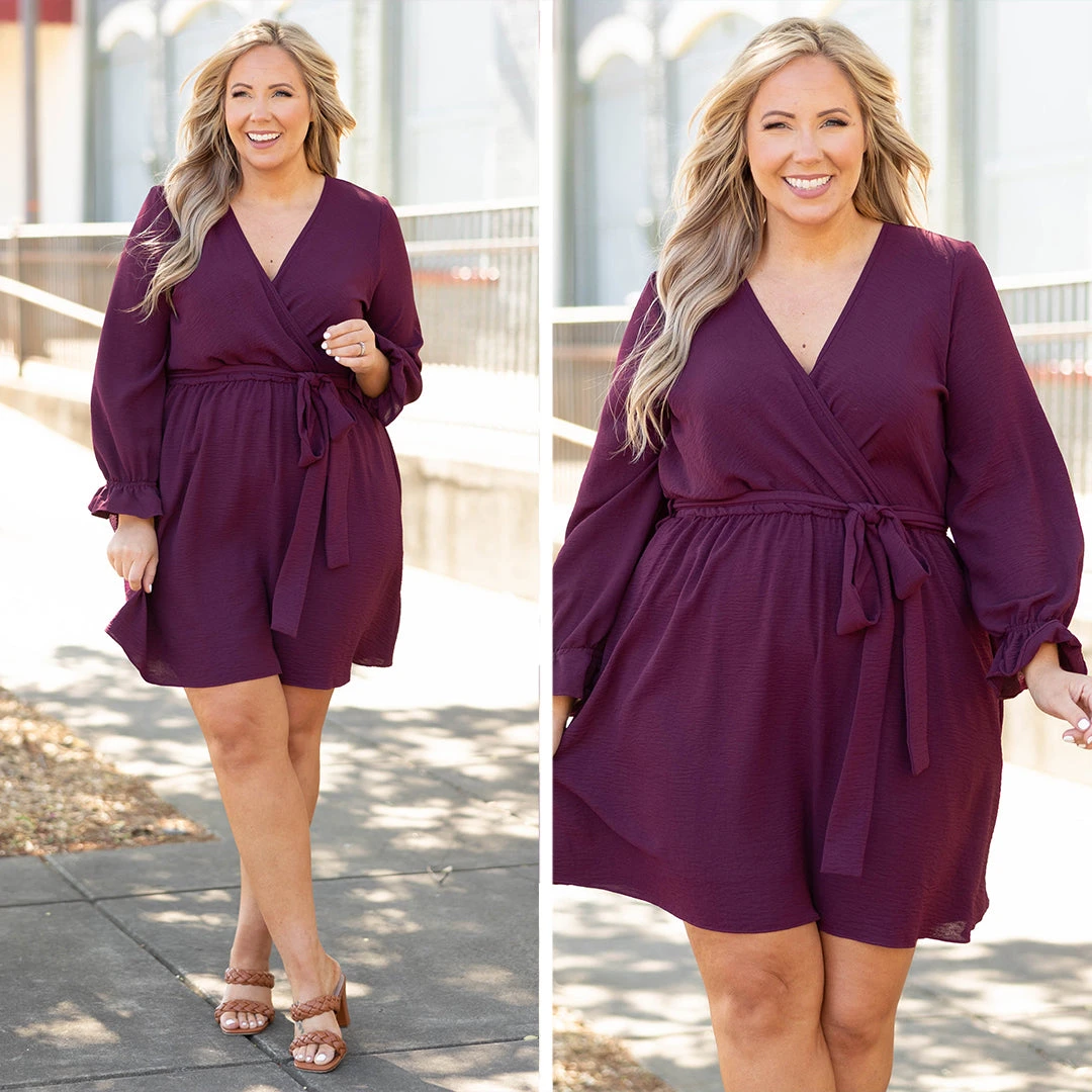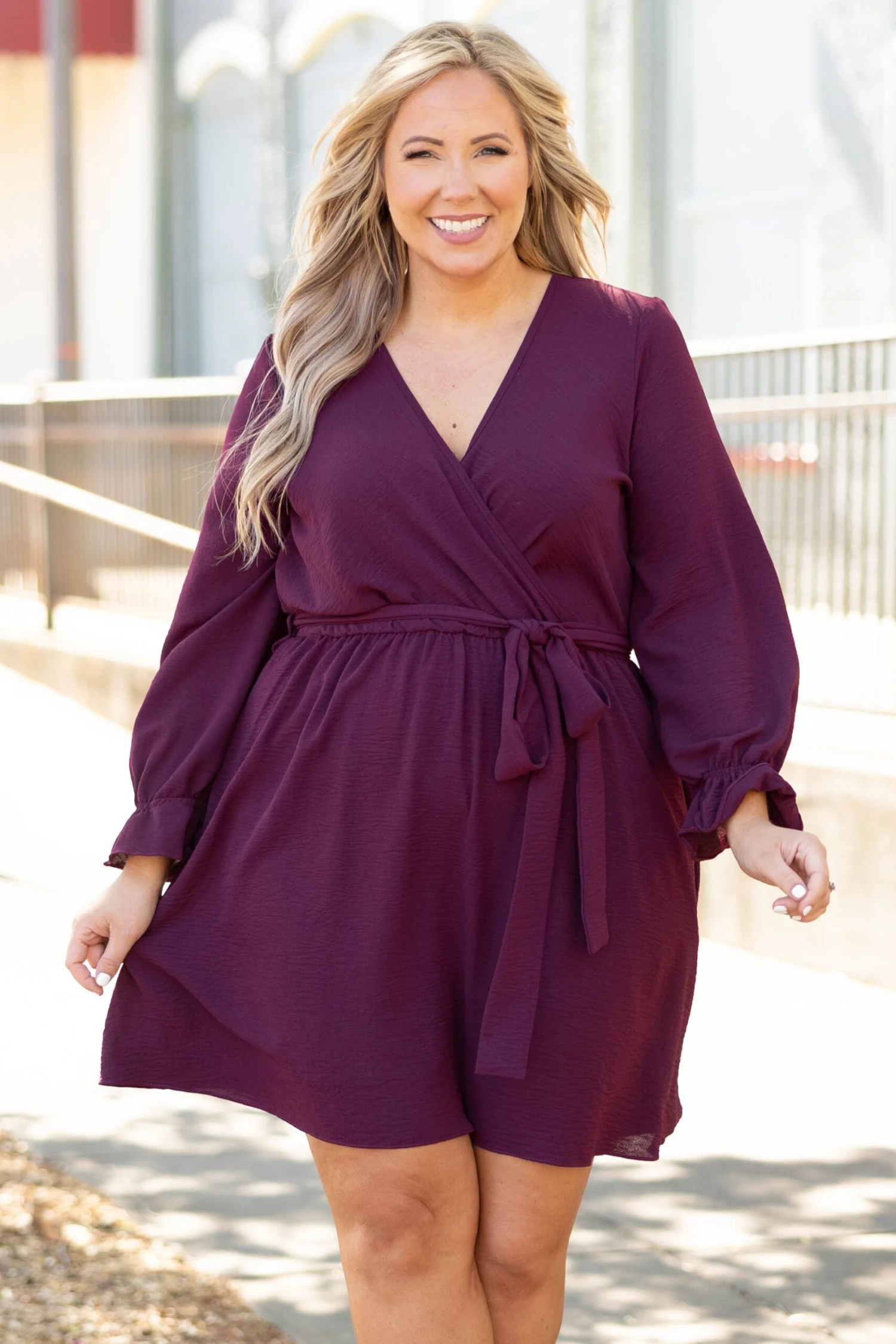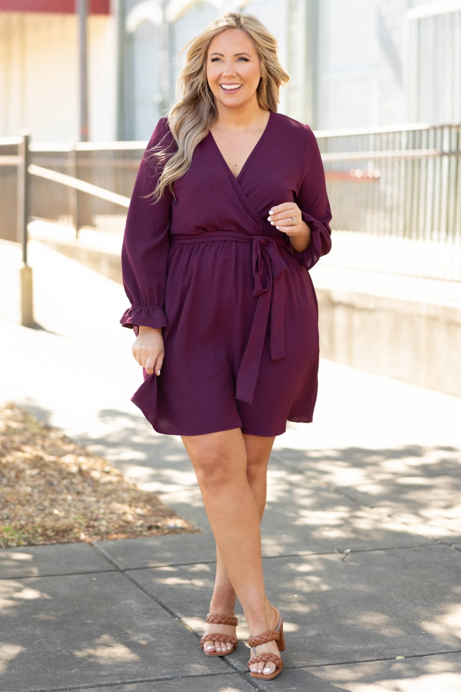 Every memory in this dress will be a good one! This dress has a bold plum color with a flirty crisscross neckline! The textured material and and flowy fit is perfect for a brunch date with the girls or a date night! This dress is so versatile and great for any occasion! Style this dress with some heels and cute accessories for a sassy chic look!