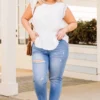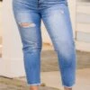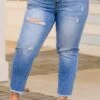Everyday in these beauties will be filled with bliss! They feature a trendy medium wash with a distressed design and frayed hemline! Their figure-flattering fit makes them a must-have for any wardrobe! Experience comfort and style with these versatile jeans!