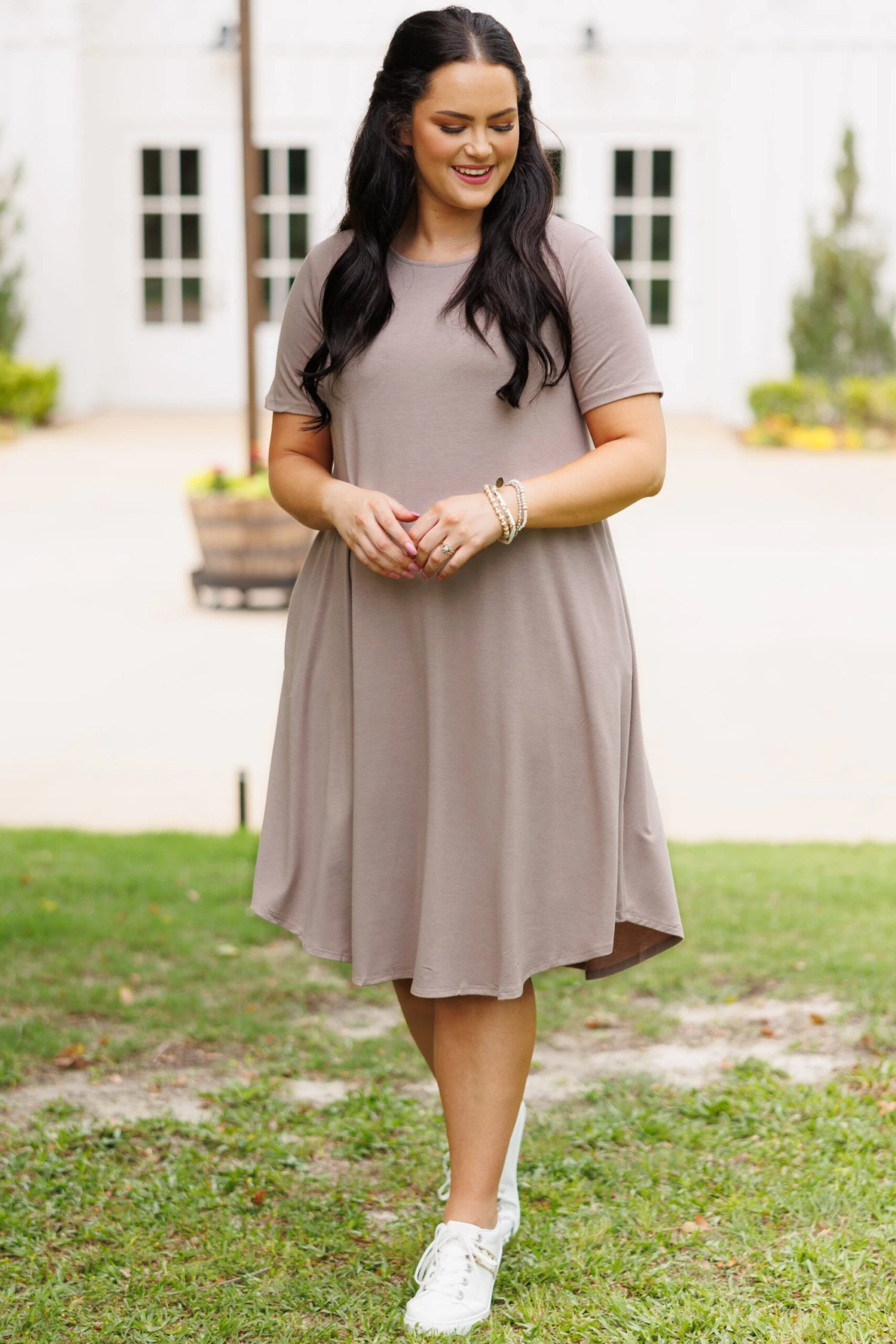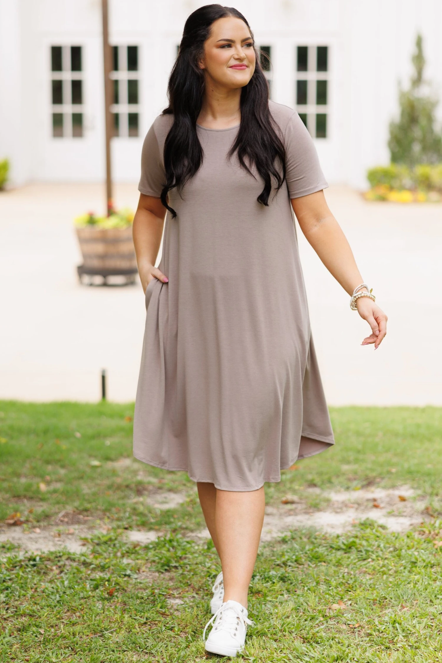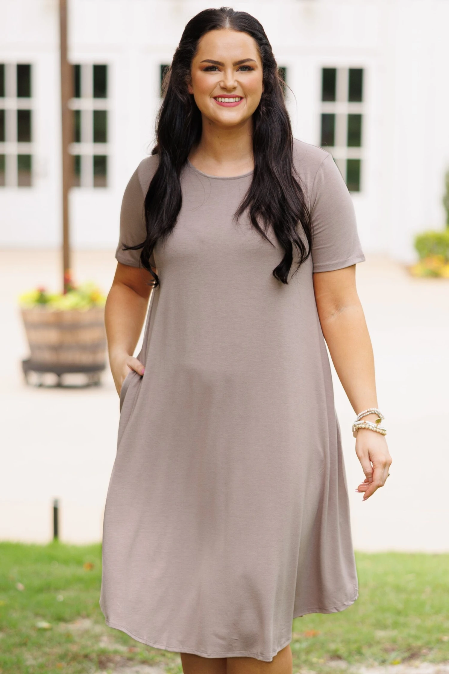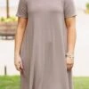This dress is everything you need and more for the season! It is comfy, stretchy, and comes in a beautiful ash mocha! With functional pockets, you’ll look and feel great running errands or spending the day with friends!