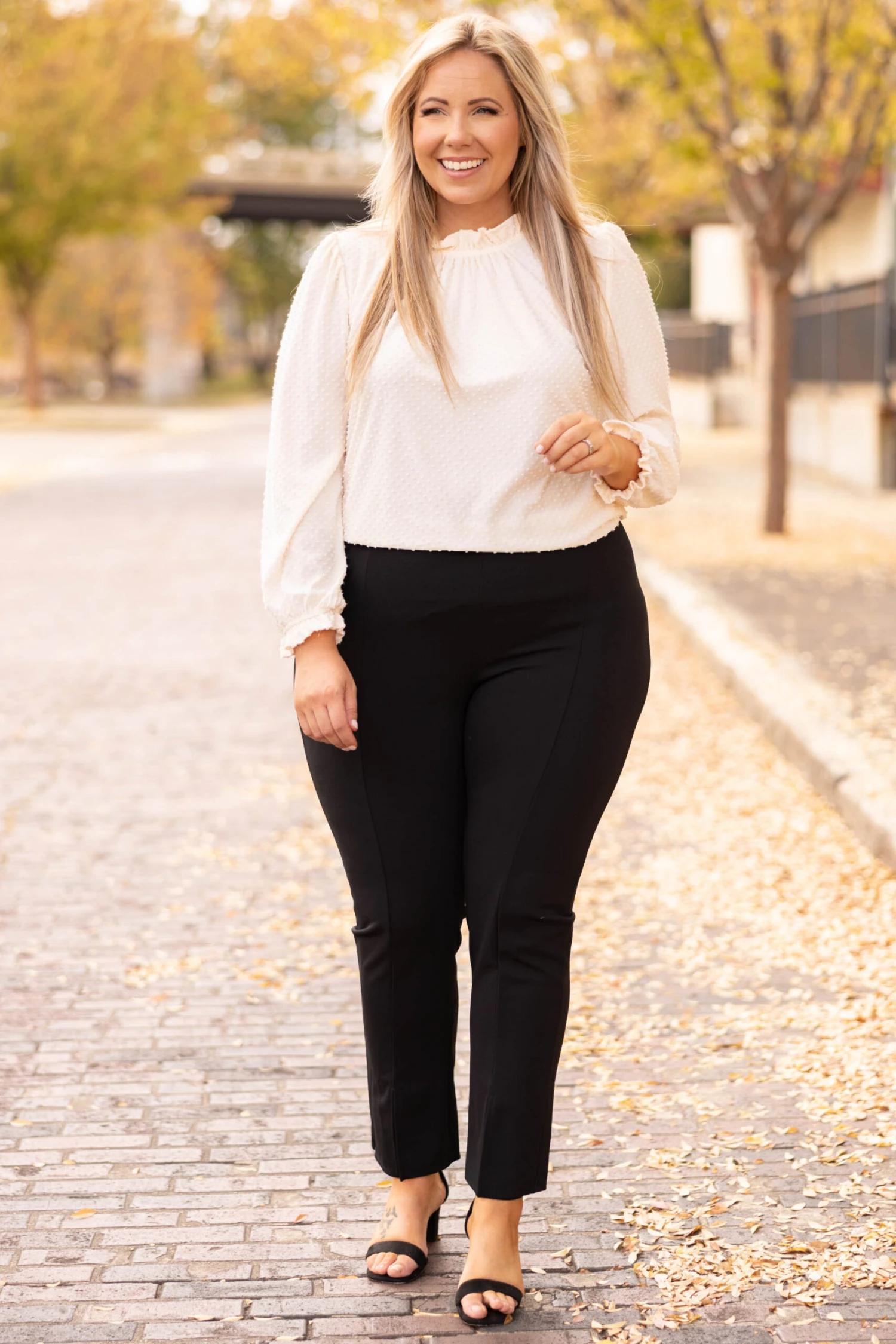 This top will change your wardrobe for the better! It has a chic cream color with the prettiest swiss dot fabric for a look you can wear everywhere! It’s soft, sweet, and has cute ruffles on the neckline and sleeves! Style this top with cute pants and heels for an effortlessly beautiful outfit!