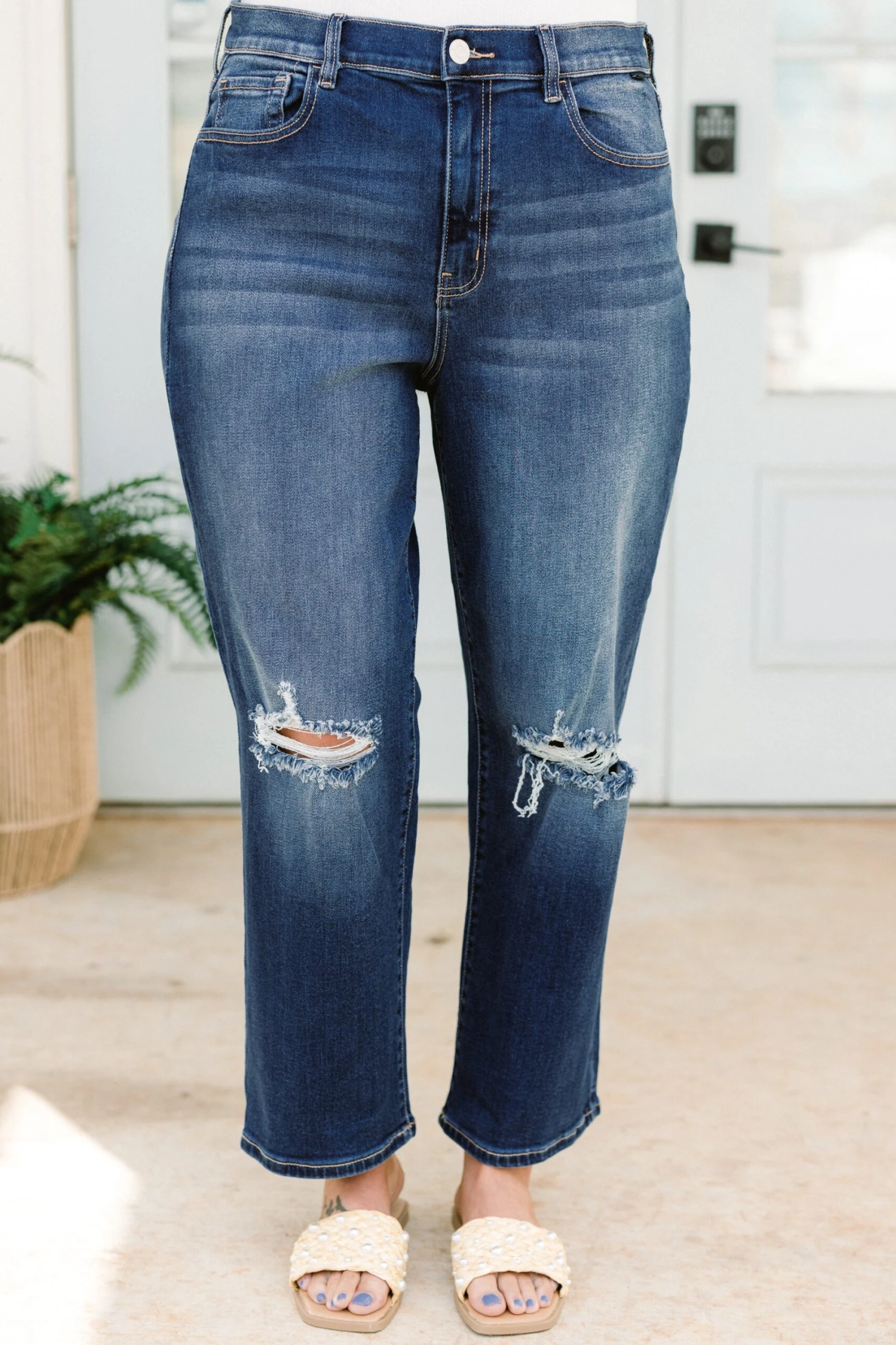 Get the perfect fit with our Everything You Need Jeans! Designed with a high rise and straight leg, these jeans will flatter your figure while providing a comfortable and stylish look! Plus, the distressed knees add an edgy touch! It’s everything you need and want in a pair of jeans!