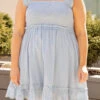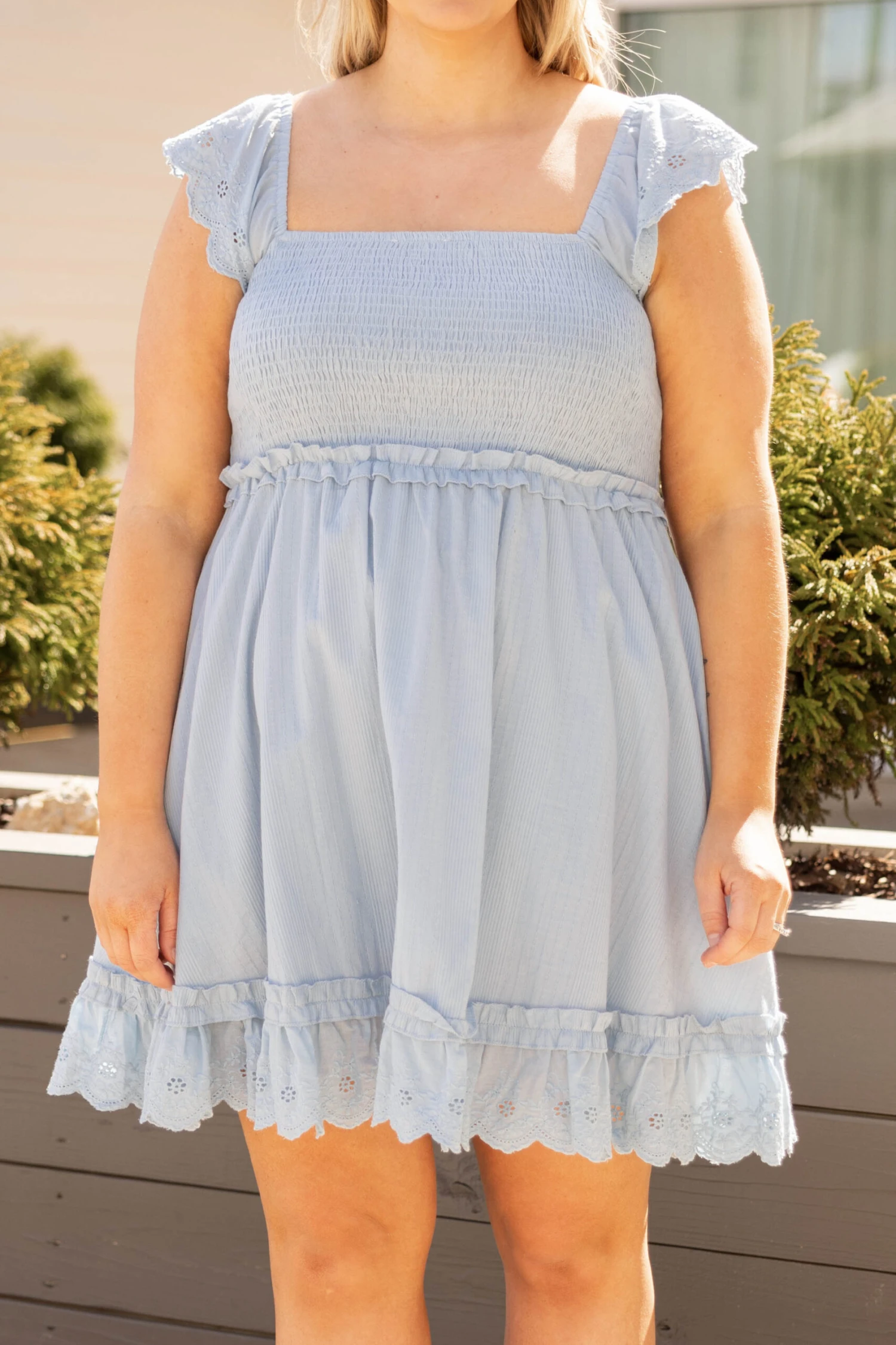 This is the perfect dress to feel fancy in the ballroom! The dusty blue textured fabric is so chic and the ruffle hem is so sweet! We love the eyelet lace detailing on this cutie at the shoulders and hem that give it something extra! Pair this fab dress with some heels and accessories for the perfect look!