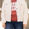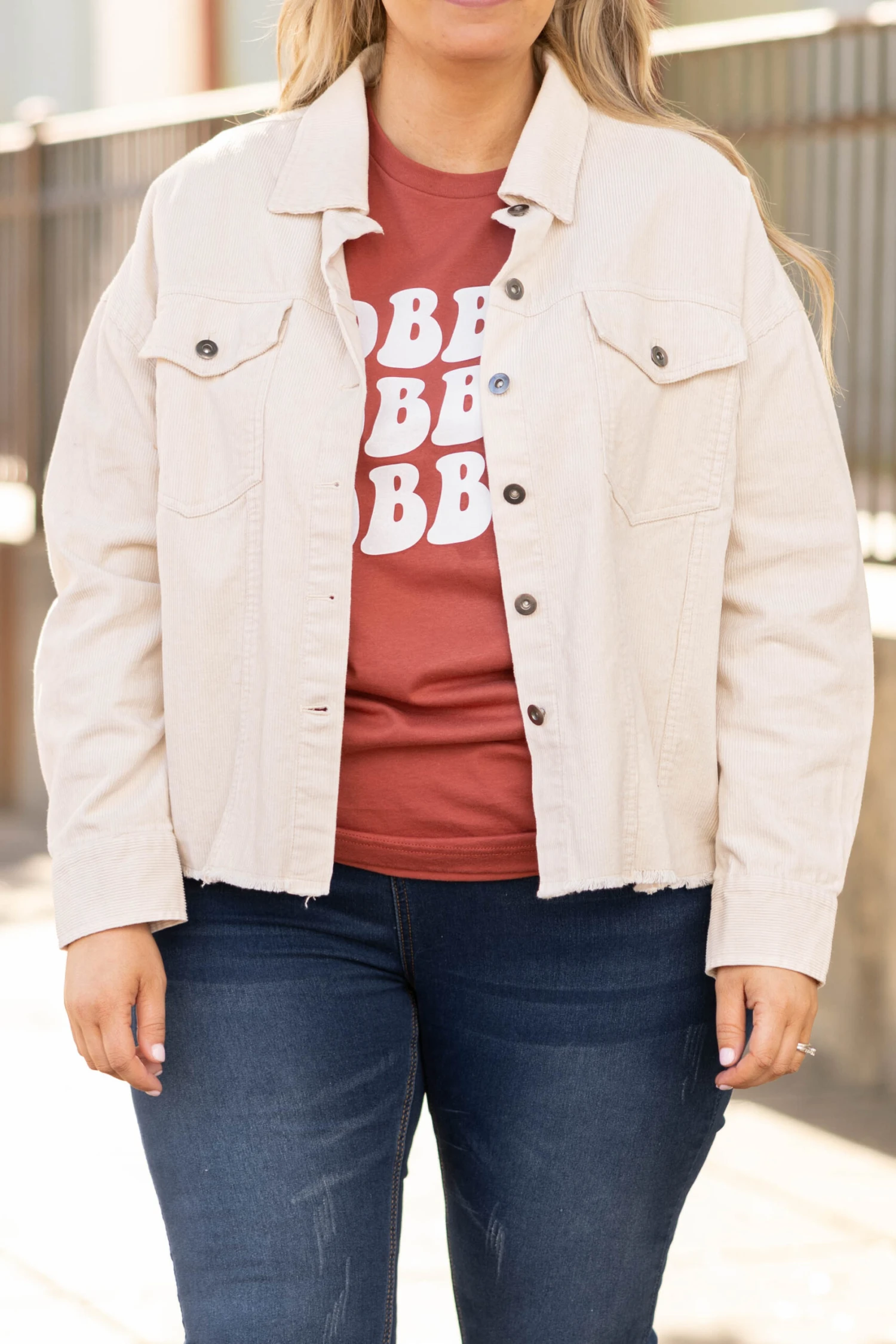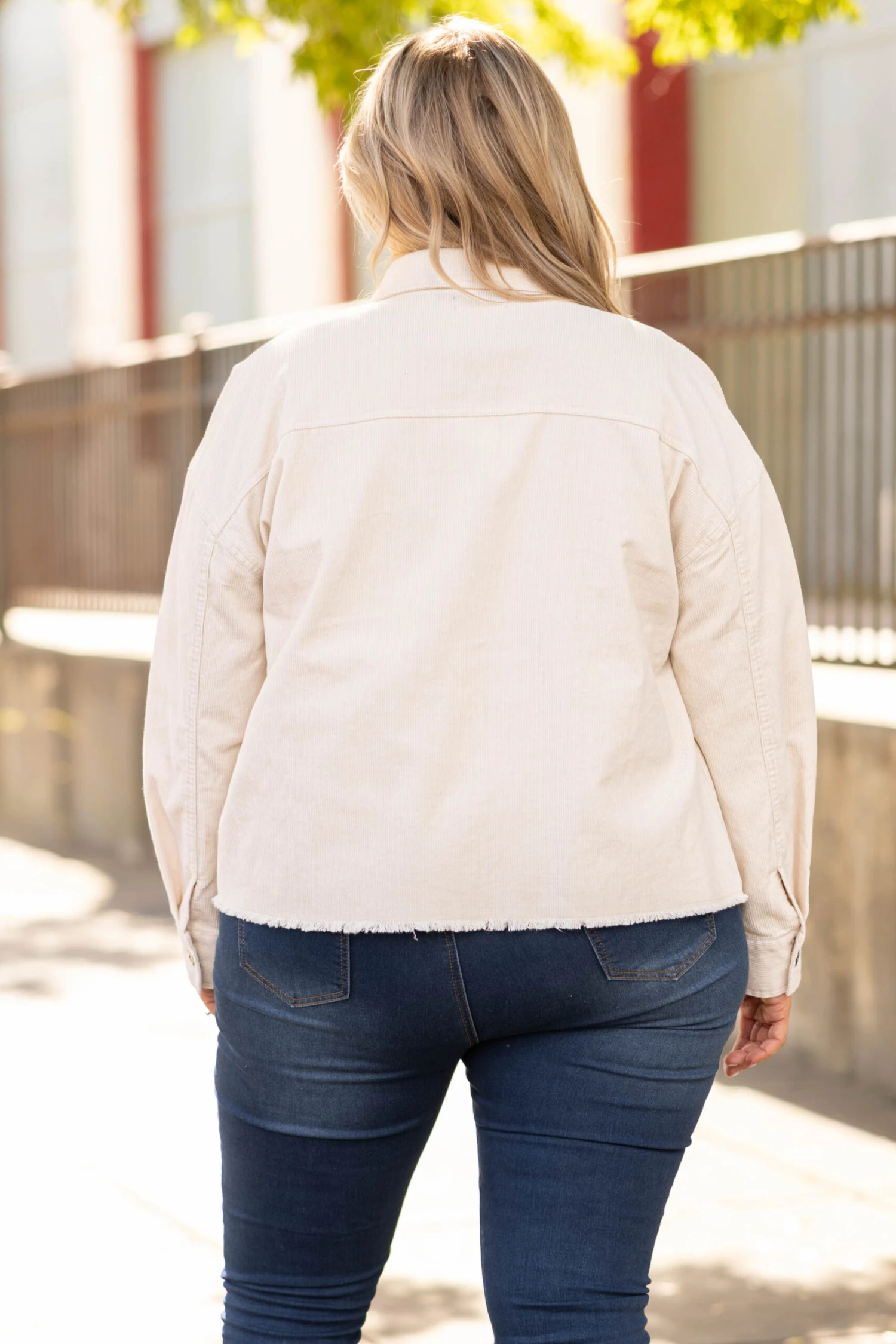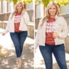 This jacket will be your new favorite of all time! It has a classic, white color and a light distressed hemline! The comfy, figure flattering fit is perfect to wear as a layering piece with all of your fave outfits! Style this jacket with a cute top and skinnies for a casual chic look!