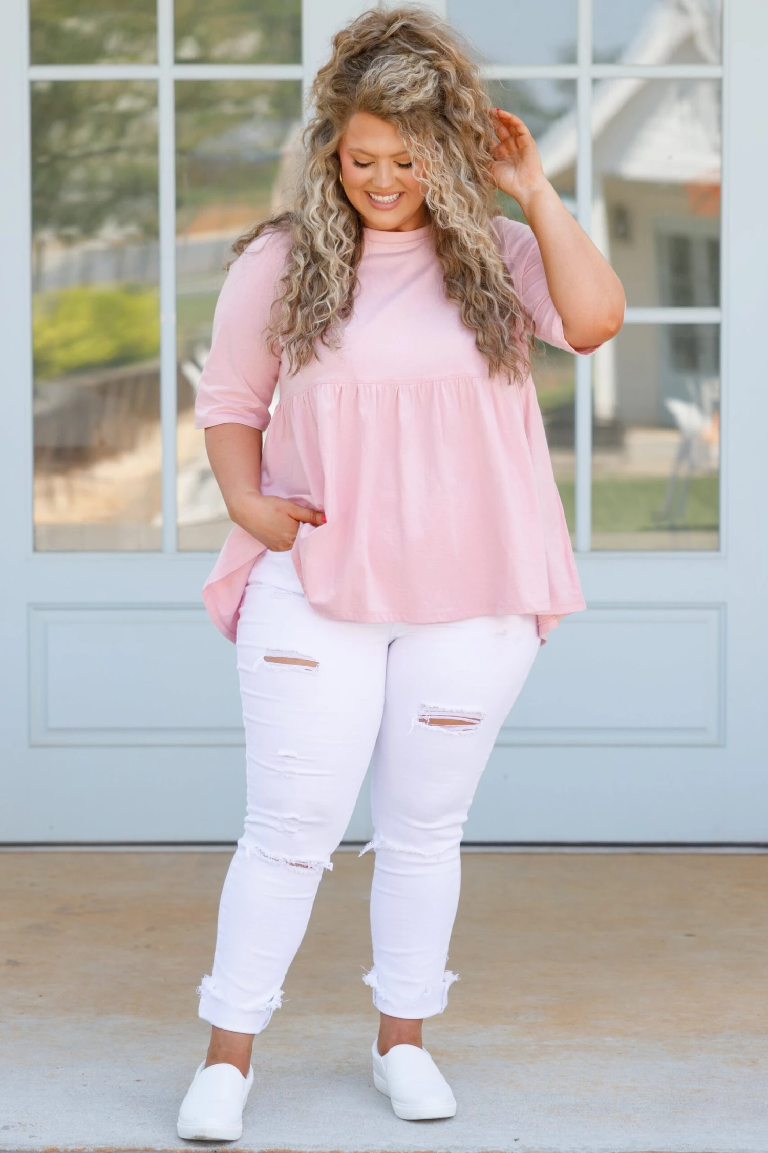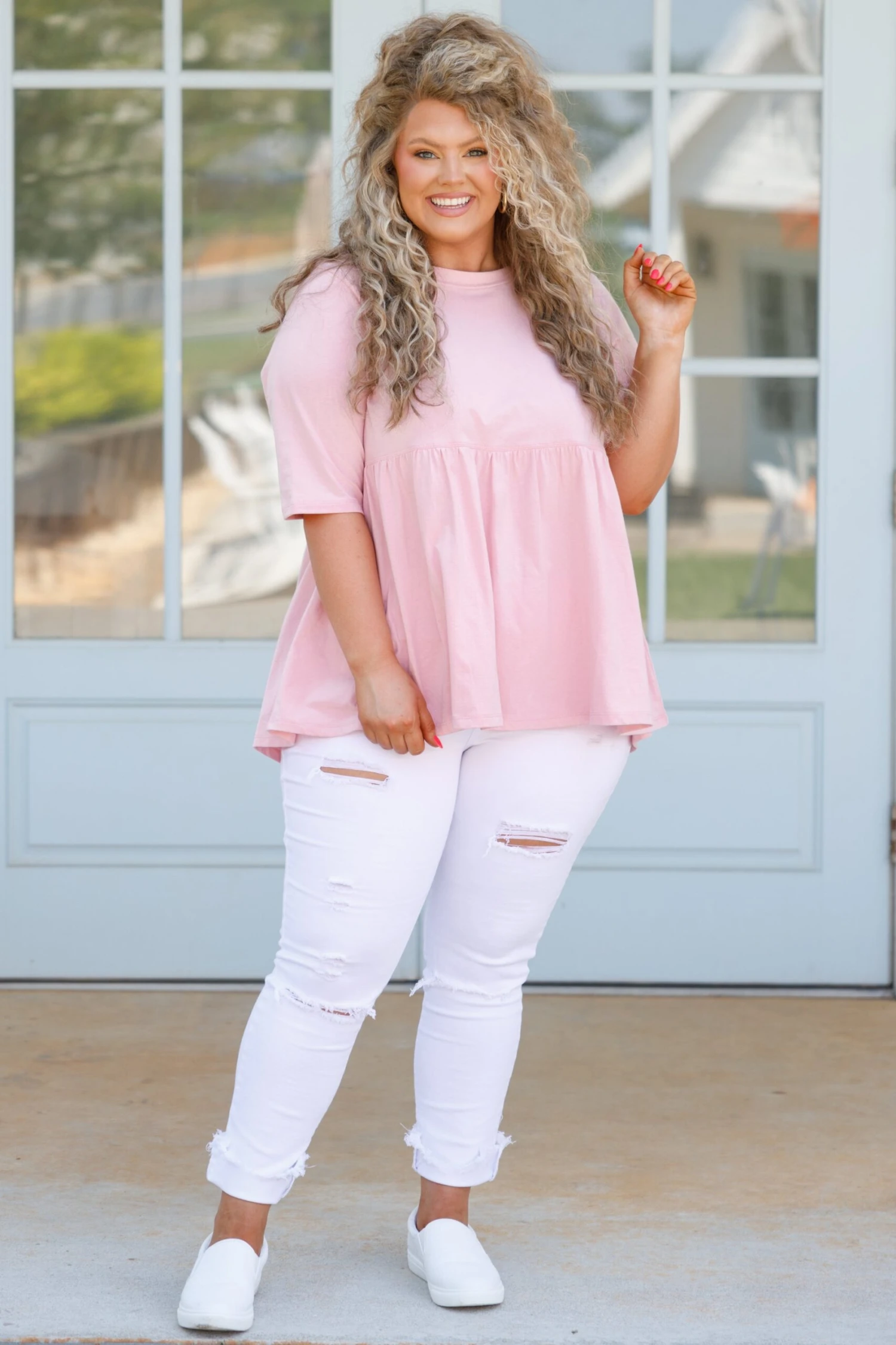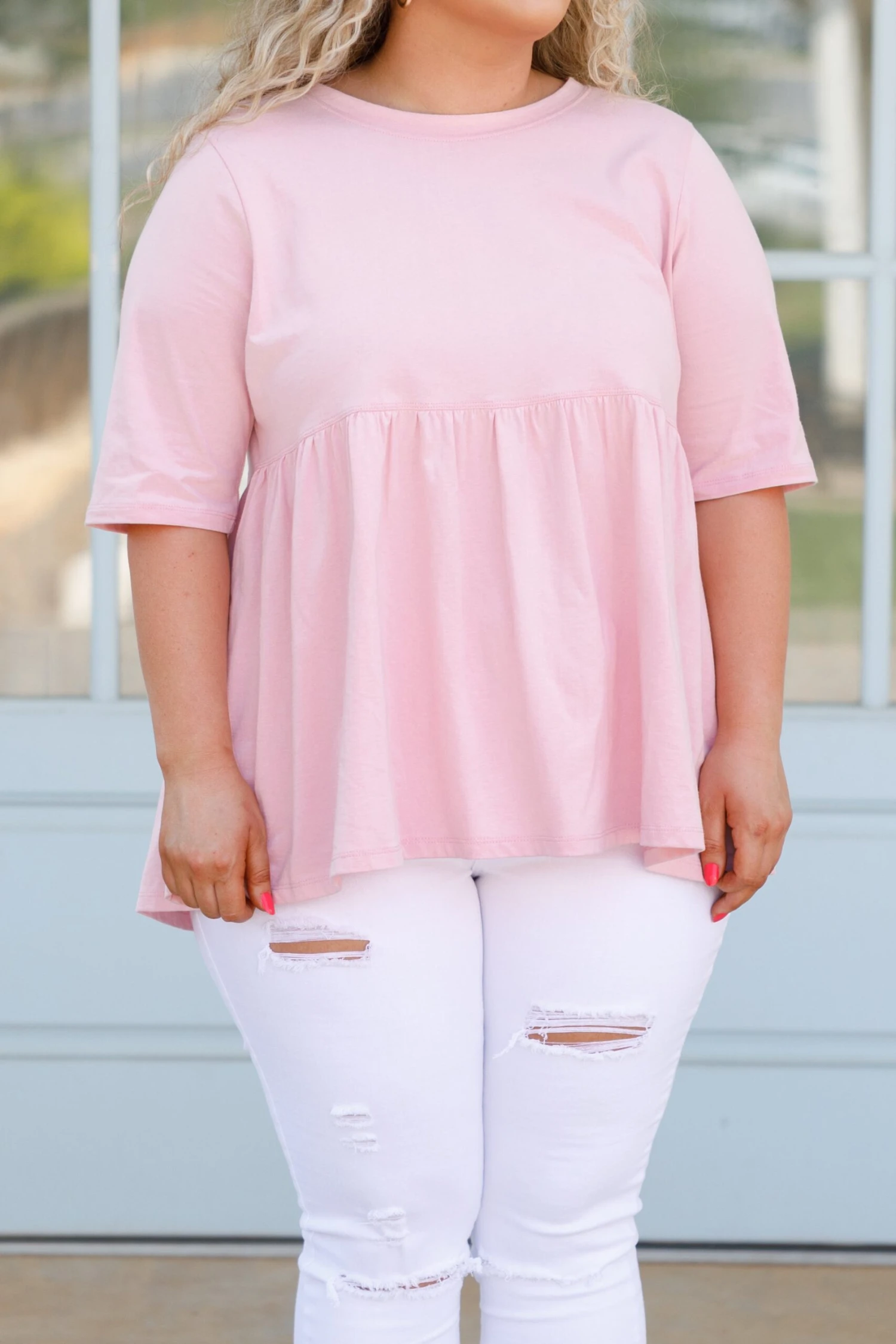 Show off your fearless soul in this top! This cutie has a dusty pink color with a babydoll style to flatter your figure! The basic style is so easy to dress up and down! Style it with distressed skinnies and sandals or sneakers for a look that is sure to impress!