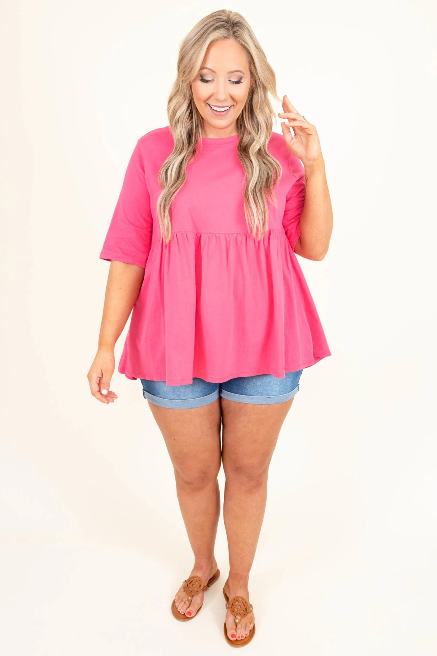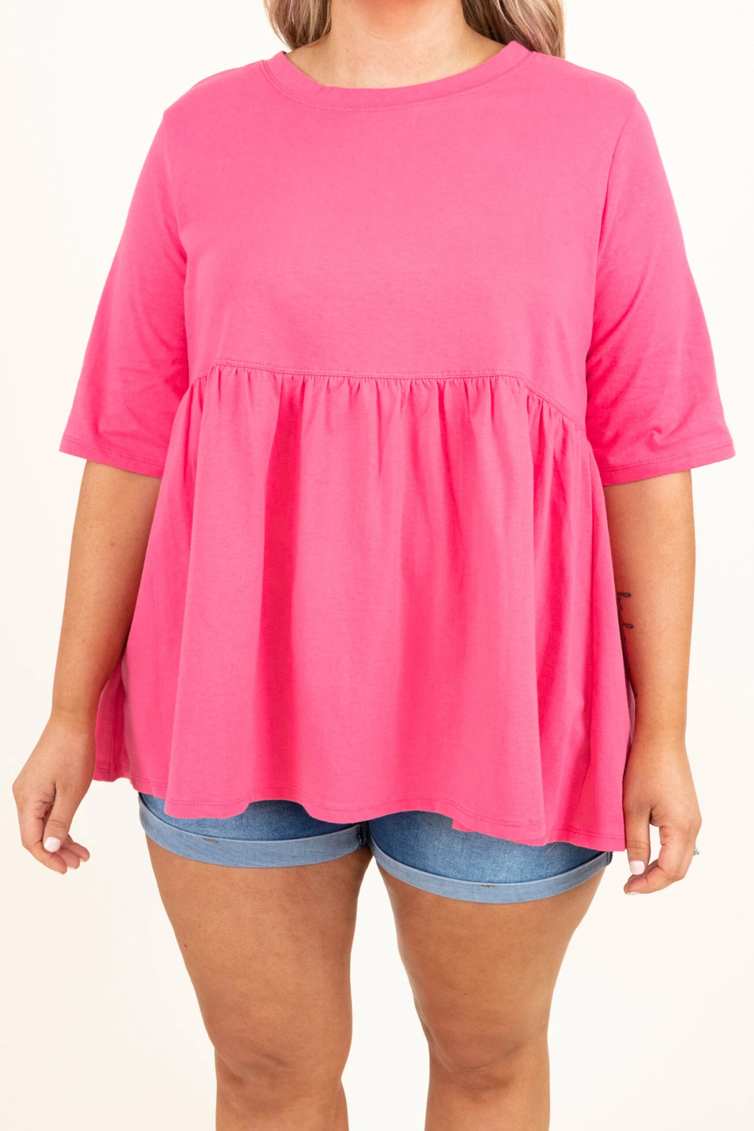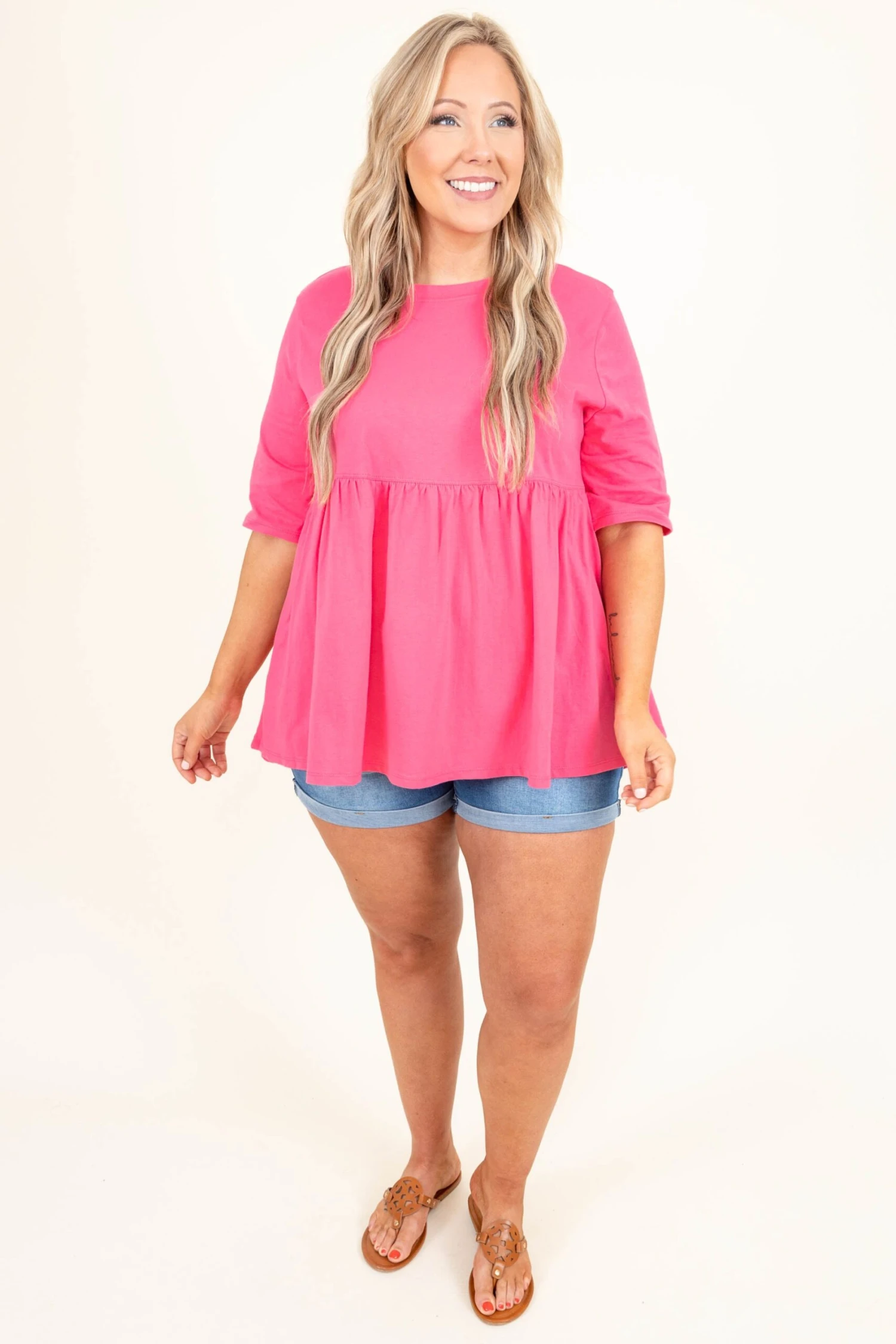 Show off your fearless soul in this top! This cutie has a bold and fierce fuchsia color with a babydoll style to flatter your figure! The basic style is so easy to dress up and down! Style it with jean shorts and sandals for a look that is sure to impress!